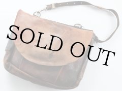 非常に肉厚な革が使われ、所々リベットが打たれています。 ショルダーストラップは切れています。