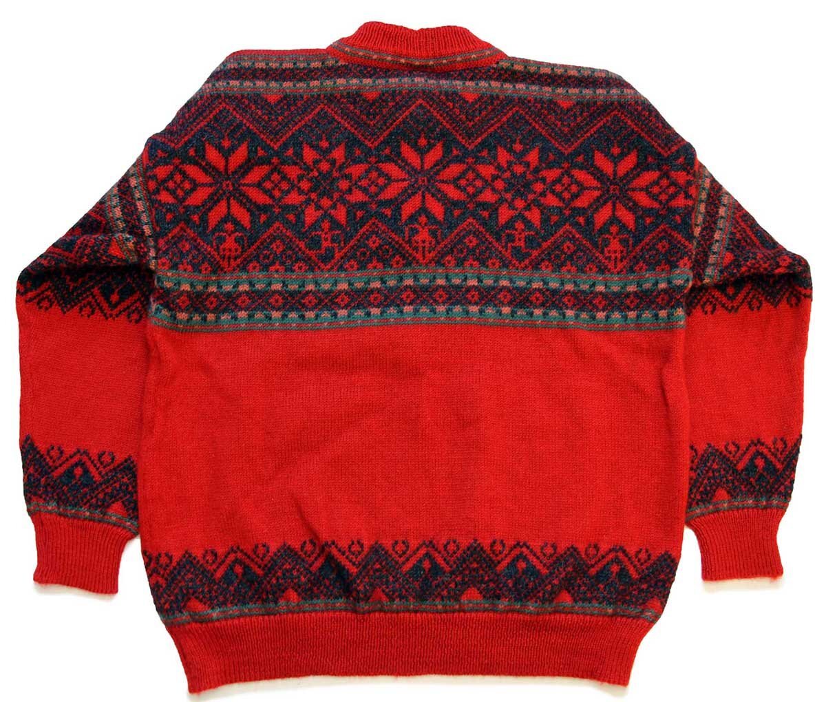 00s ノルウェー製 DALE OF NORWAY 雪柄 ノルディック柄 ハーフジップ ウールニット セーター 赤 XL