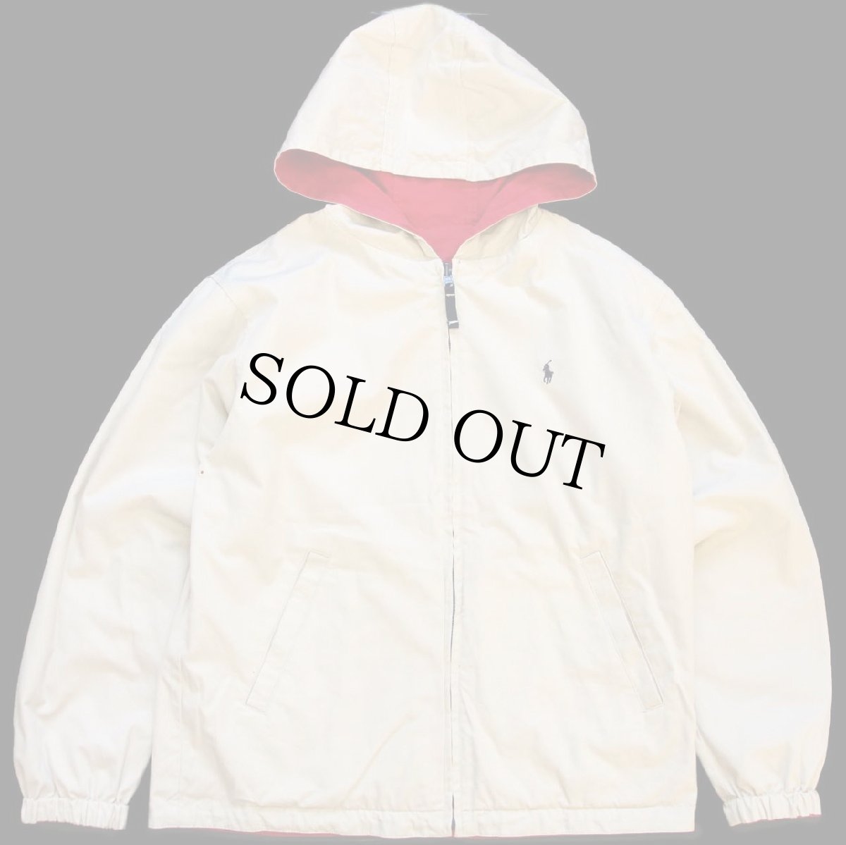 00s ポロ ラルフローレン ワンポイント リバーシブル コットンジャケット パーカー 赤×ライトベージュ