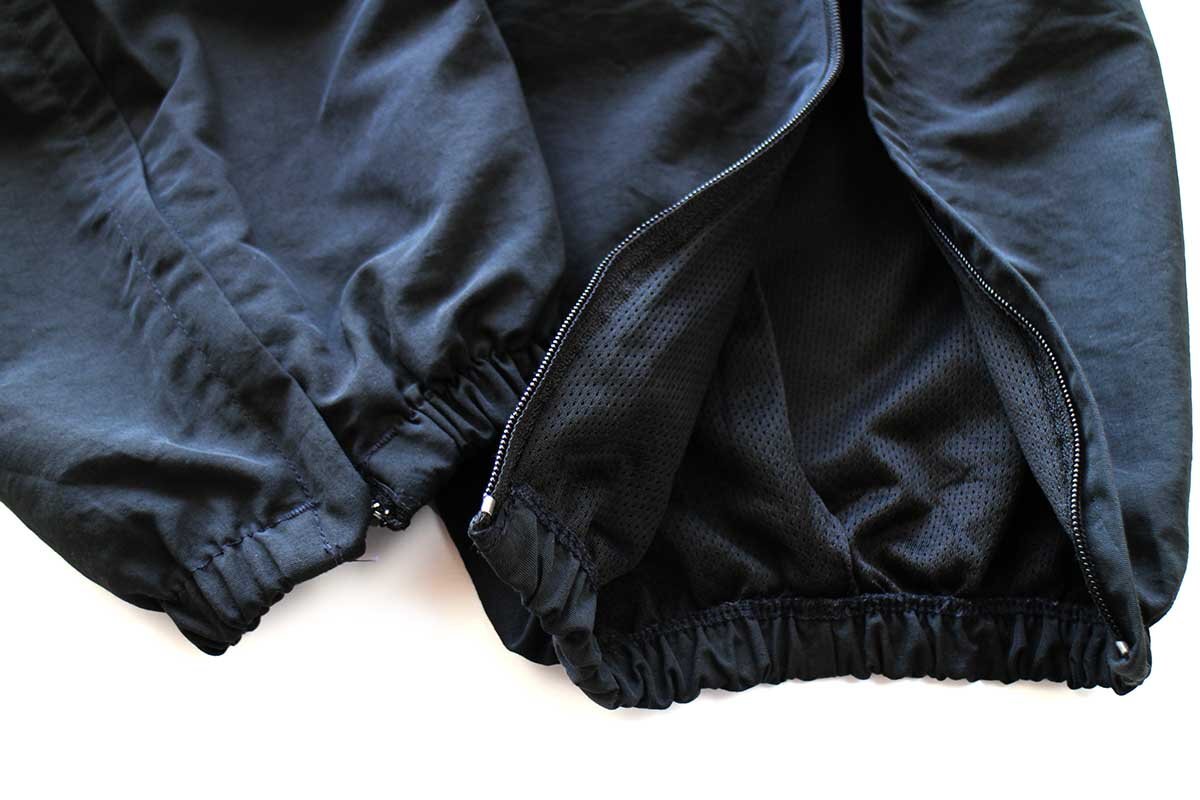 ウエストにゴム&ドローコードあり、サイドポケットあり、裏地はメッシュ、裾にジップあり、右ポケット内にネームタグあり、ヒザとヒップは生地が二重になっています。