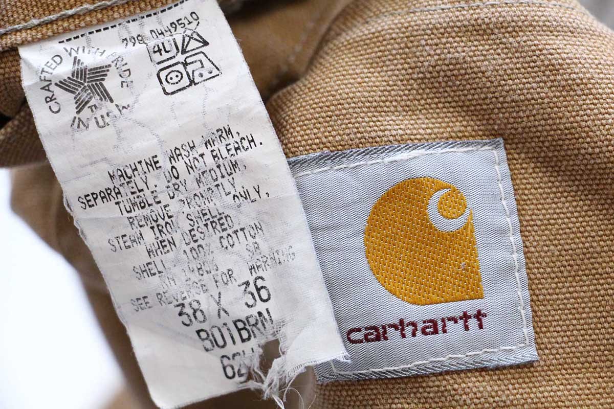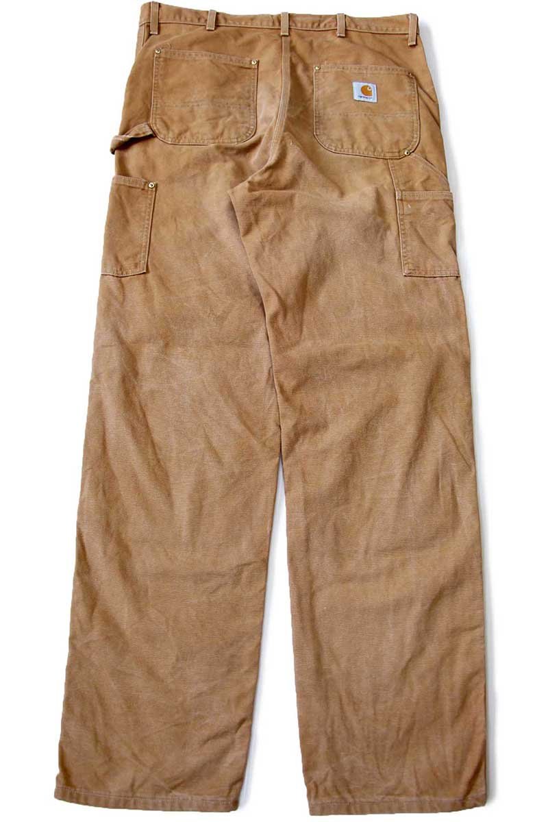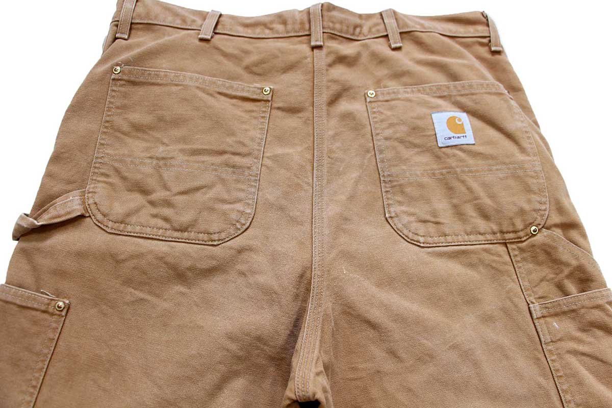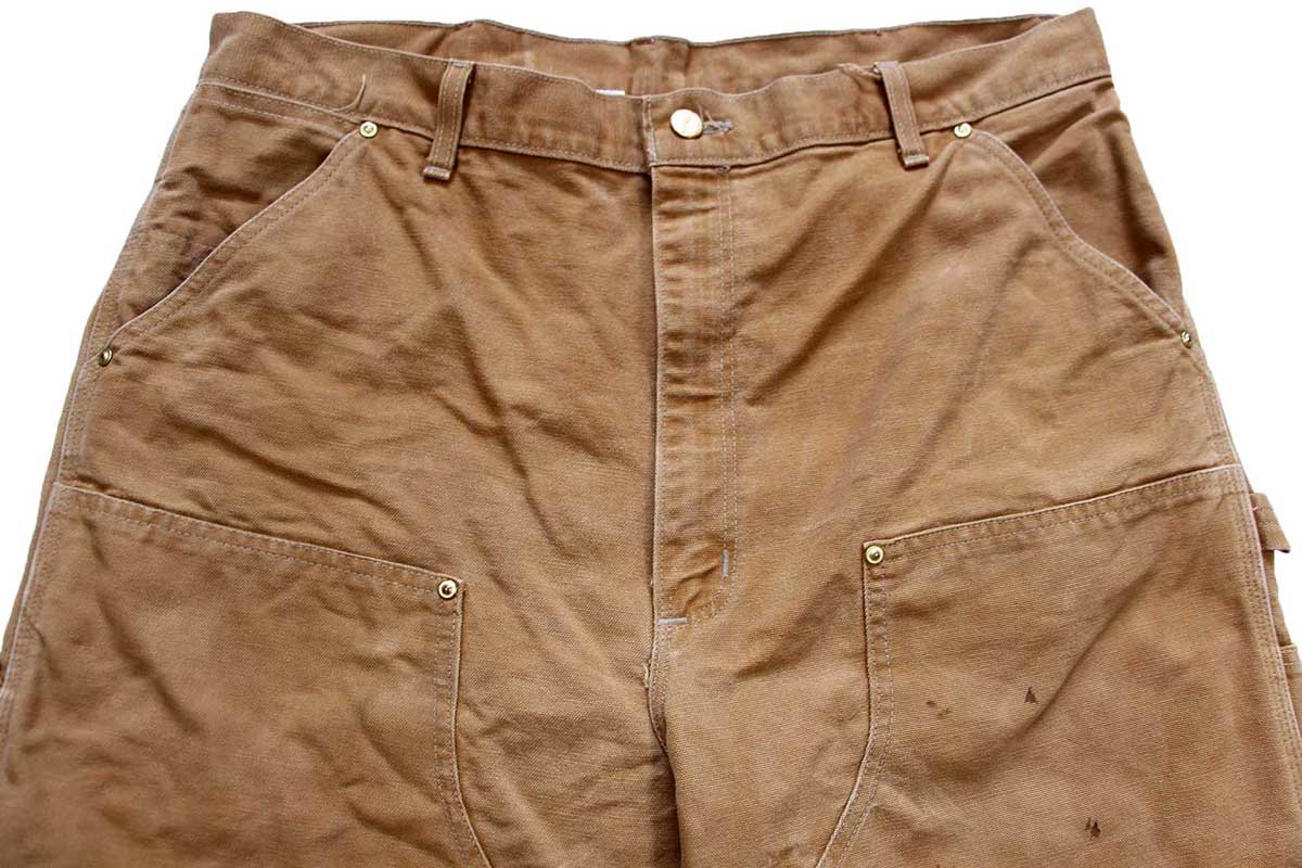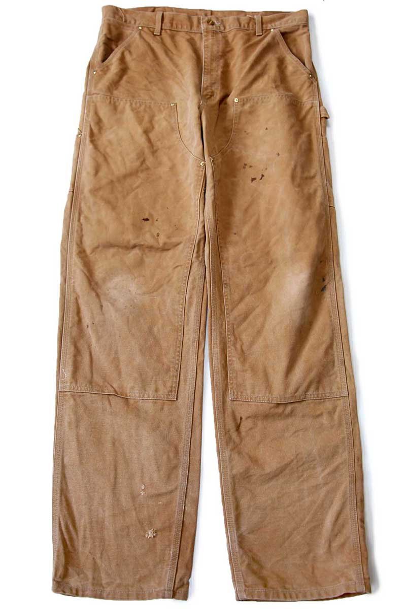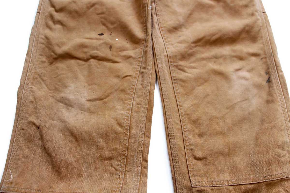90s USA製 carharttカーハート ペンキ飛び ダブルニー ダック地 ペインターパンツ 茶 W38 L36