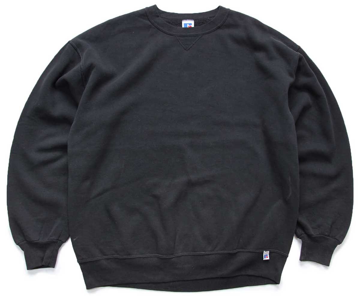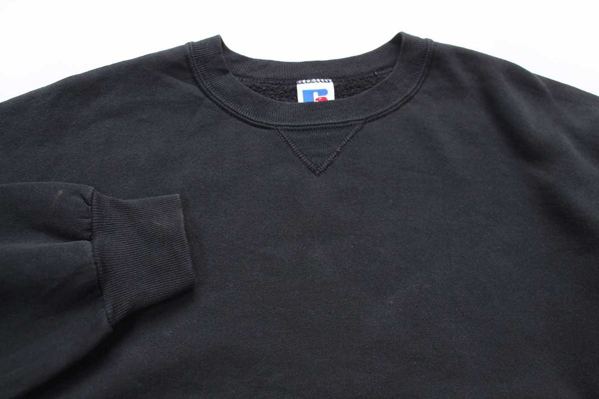 90s USA製 RUSSELLラッセル 無地 前V スウェット 黒 XL★ブランク