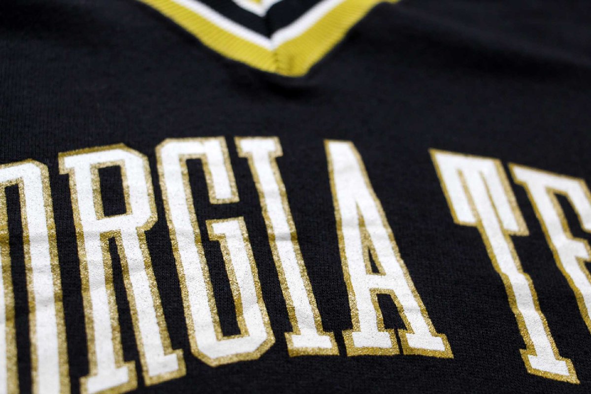 70s USA製 RUSSELLラッセル GEORGIA TECH Vネック リブライン スウェット 黒 L