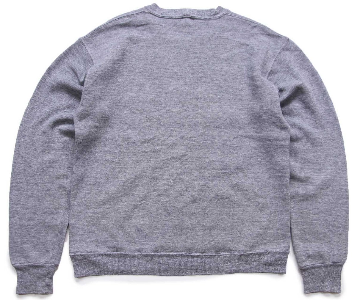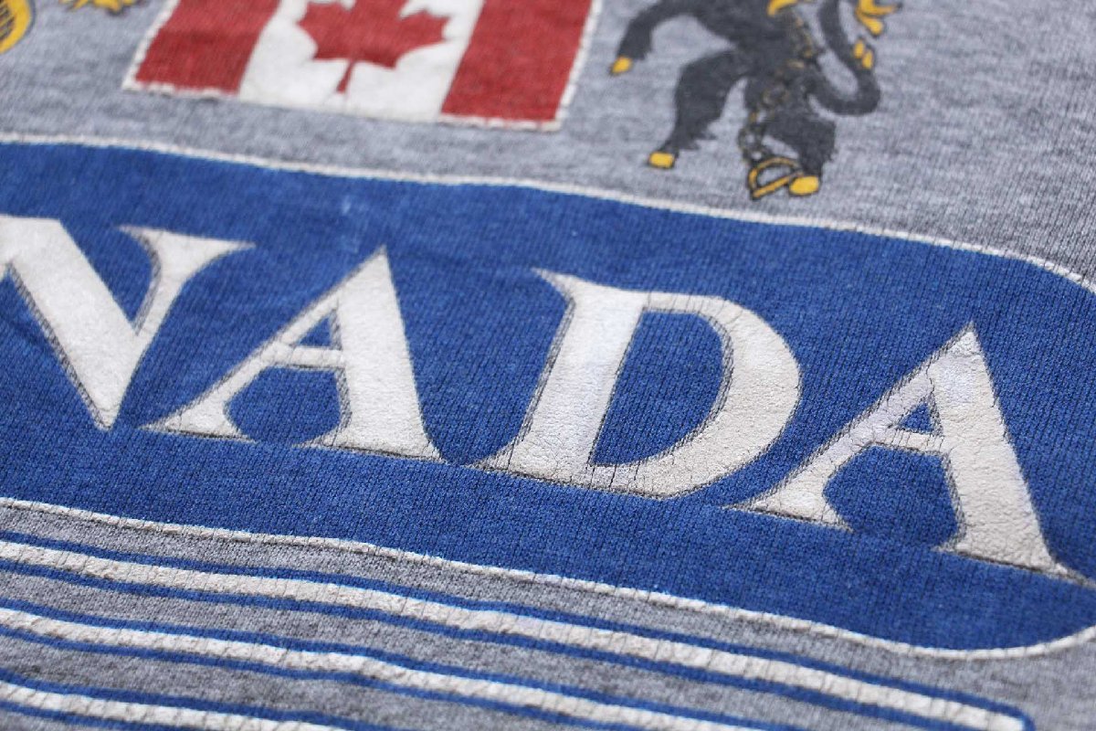 80s USA製 RUSSELLラッセル CANADA エンブレム 国旗 ひび割れプリント 前V スウェット 杢グレー M