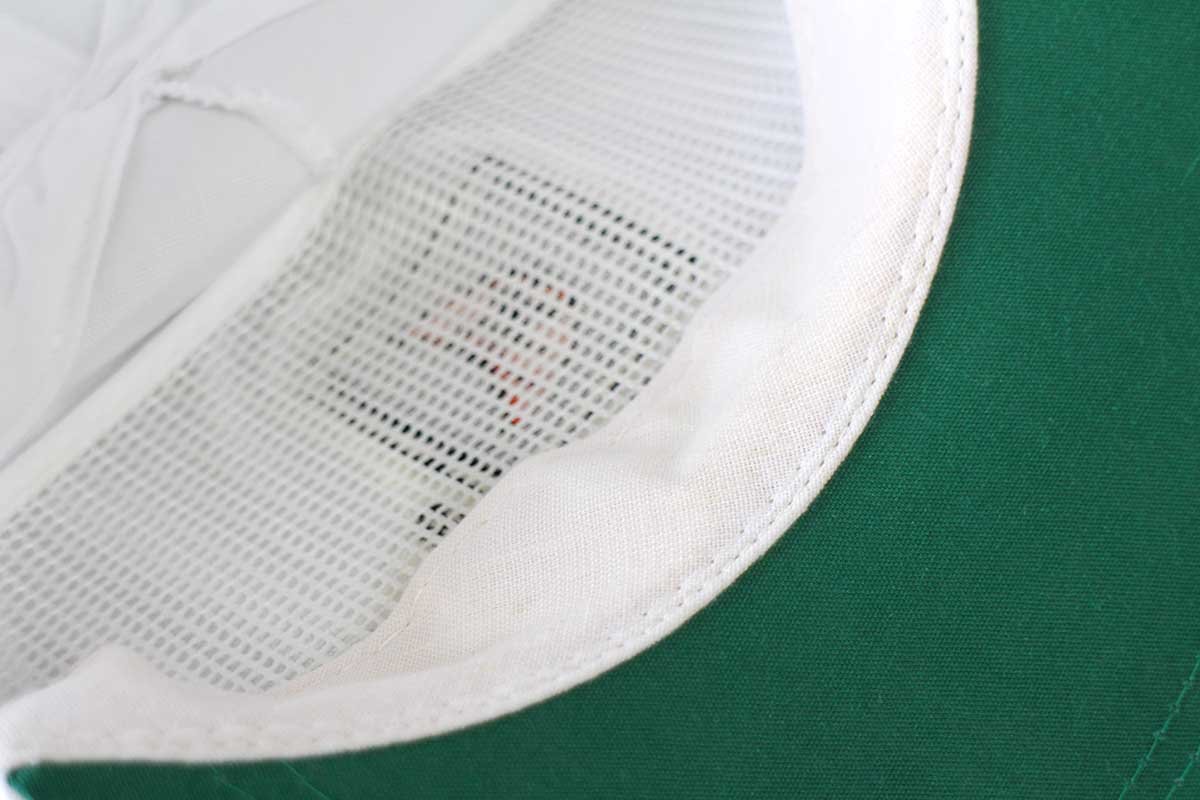 サイドとバックパネルにハトメあり、フロント内装に型崩れ防止の為のメッシュあり