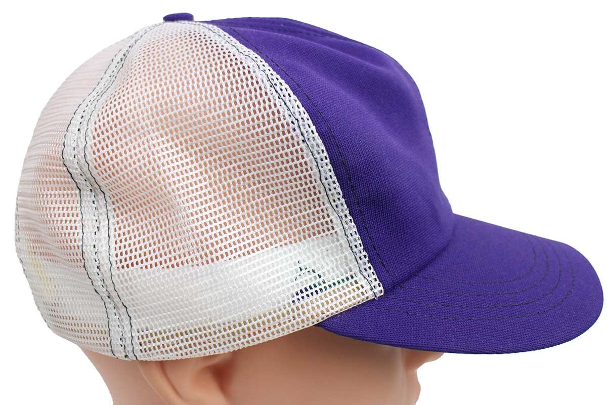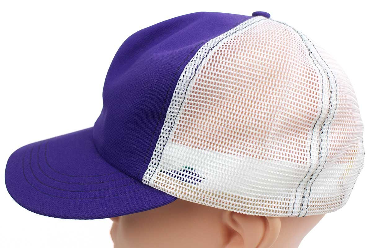 デッドストック★80s USA製 無地 ツートン 切り替え メッシュキャップ 紫×白