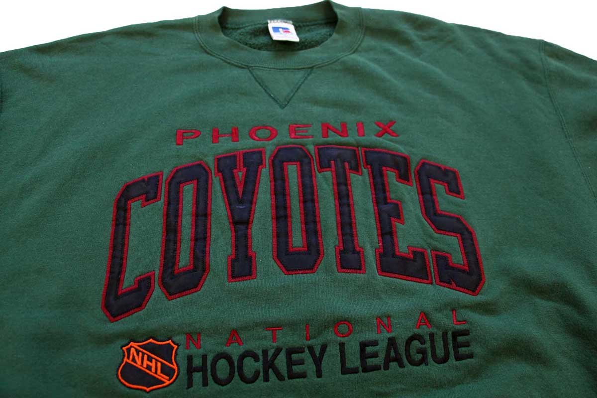90s USA製 RUSSELLラッセル NHL PHOENIX COYOTES パッチ&刺繍 前V スウェット 緑 XL