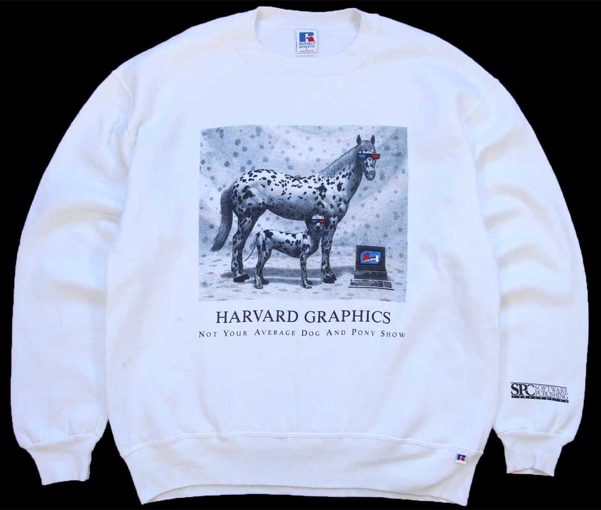 90s USA製 RUSSELLラッセル HARVARD GRAPHICS アート 前V スウェット 白 L