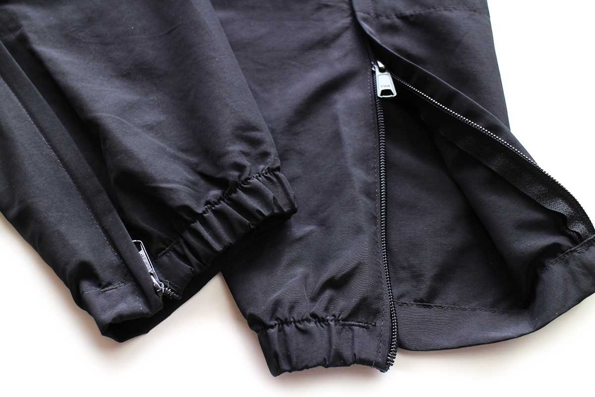フロント左にロゴ刺繍あり、ウエストにゴム&ドローコードあり、サイドポケットあり、裾にジップあり、右ポケット内にネームタグあり、ヒザとヒップは生地が二重になっています。
