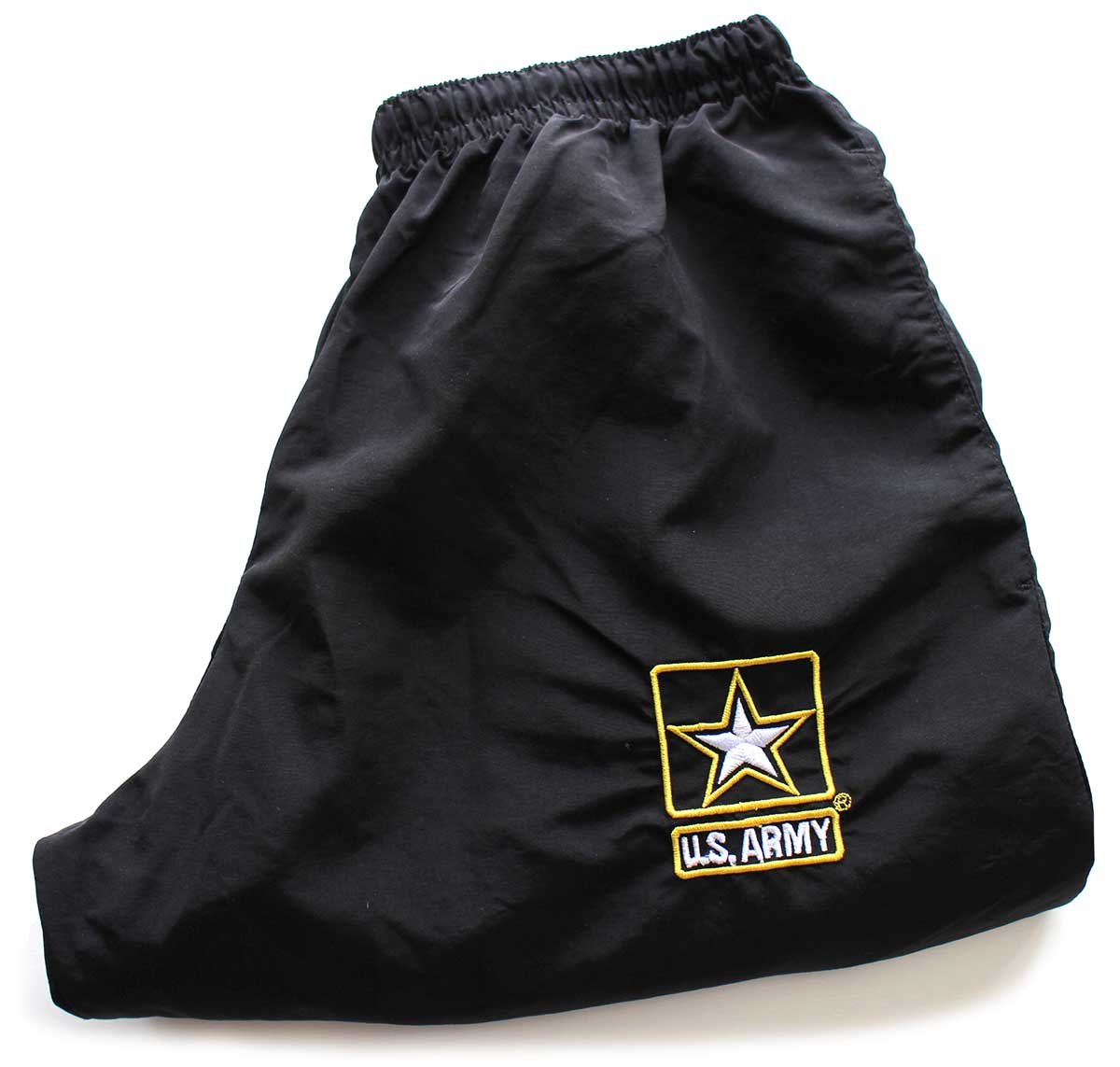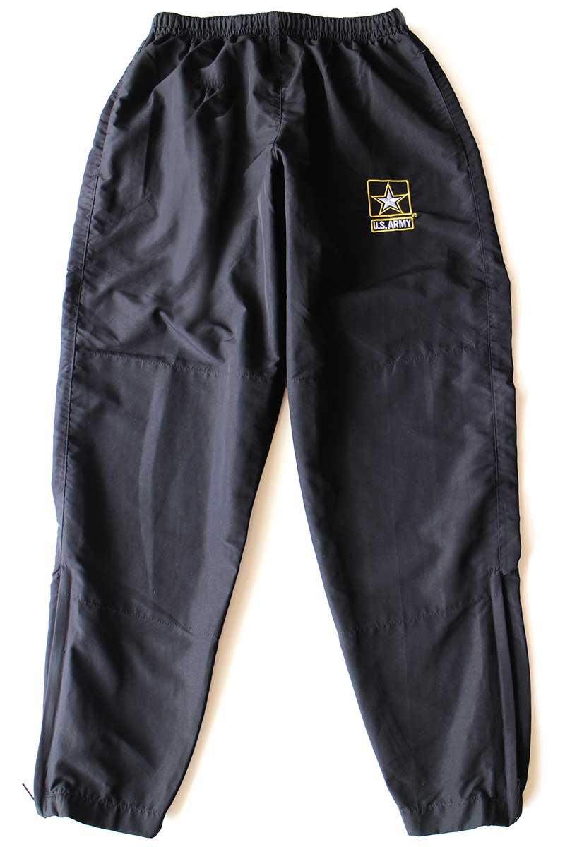 15 米軍 U.S.ARMY ロゴ刺繍 APFU トレーニング ナイロンパンツ 黒 M/R★93 IPFU