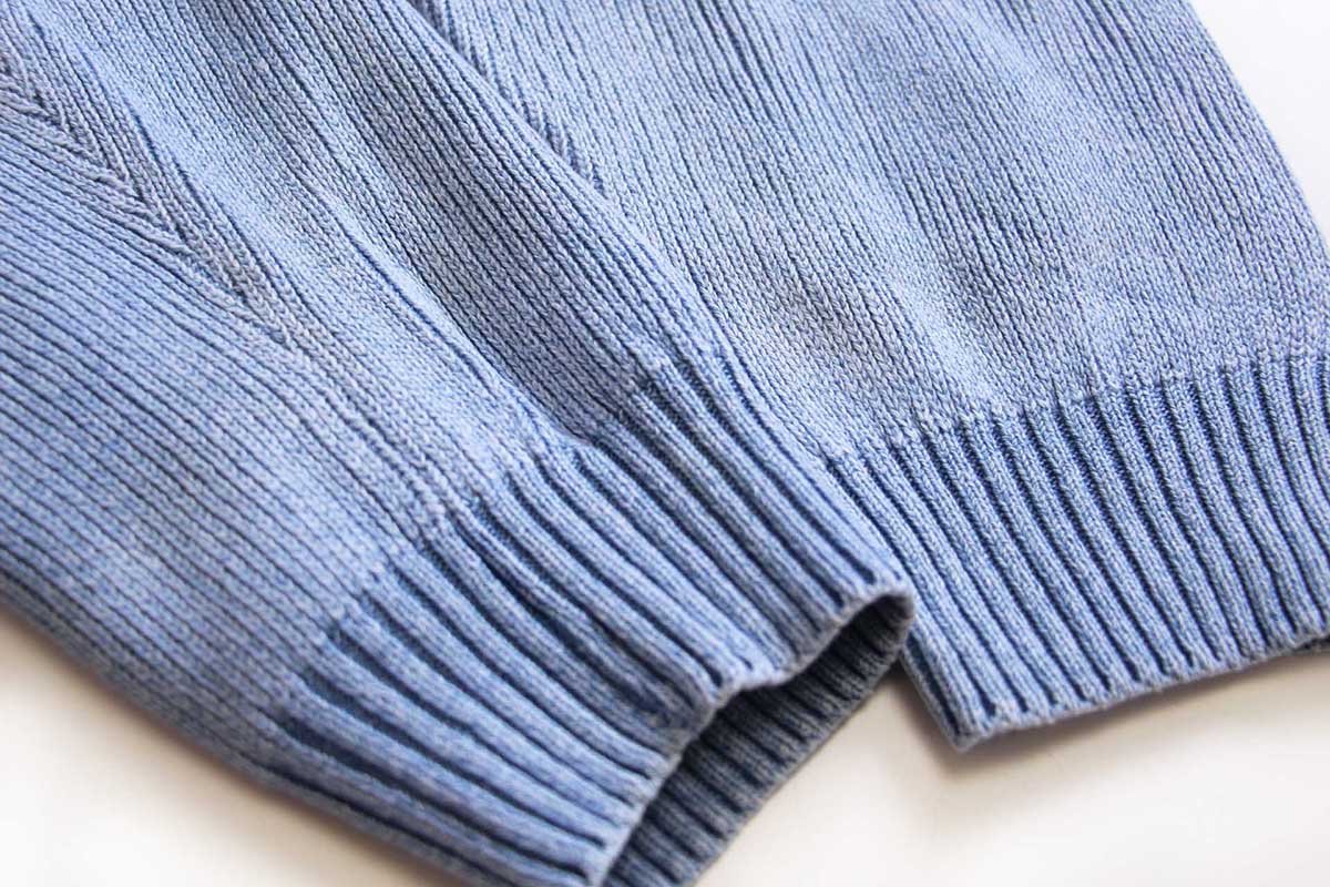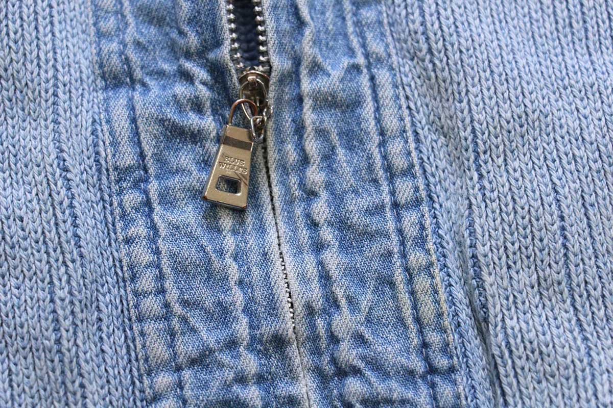 ヨーク部や前立てはデニム地に切り替えられたガシッとしたニットです。
