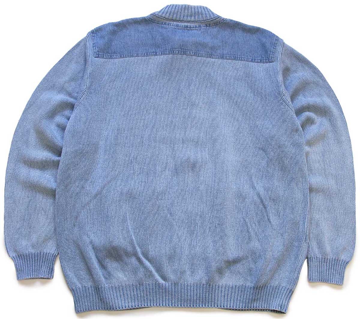 90s デンマーク製 BLUE WILLI'S デニム切り替え フルジップ コットンニット セーター インディゴ XXXL★特大