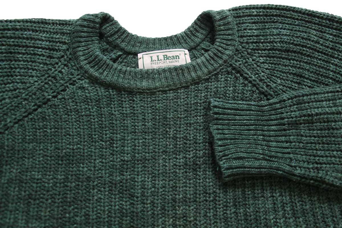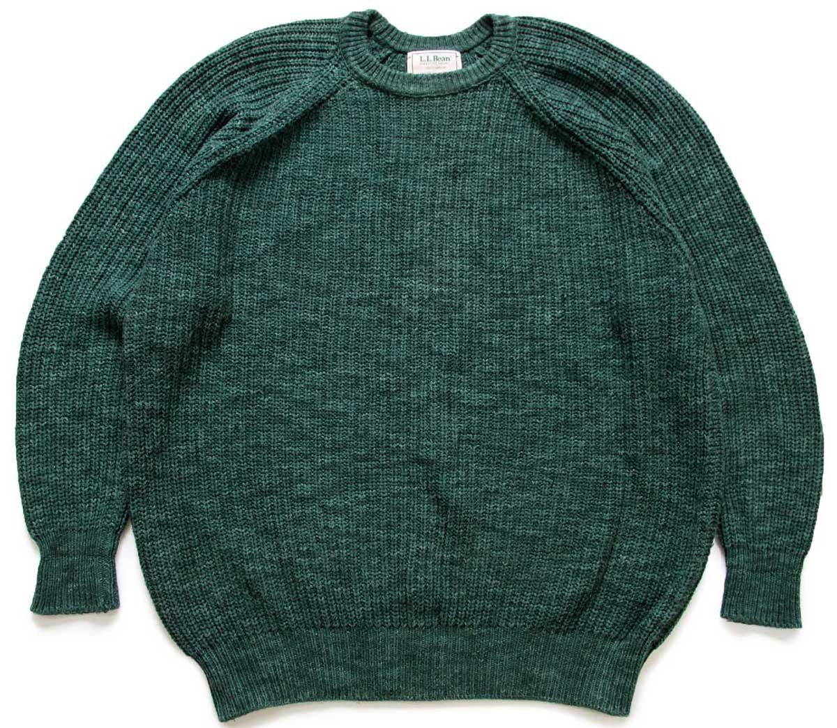 80s USA製 L.L.Bean 無地 ローゲージ コットンニット セーター 緑 XL