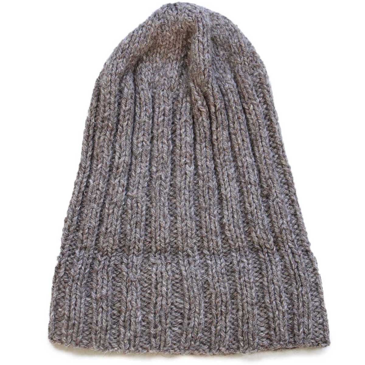 70s アイルランド製 Dun anGus ウール ハンドニット キャップ ブラウンベージュ ミックス★ニット帽
