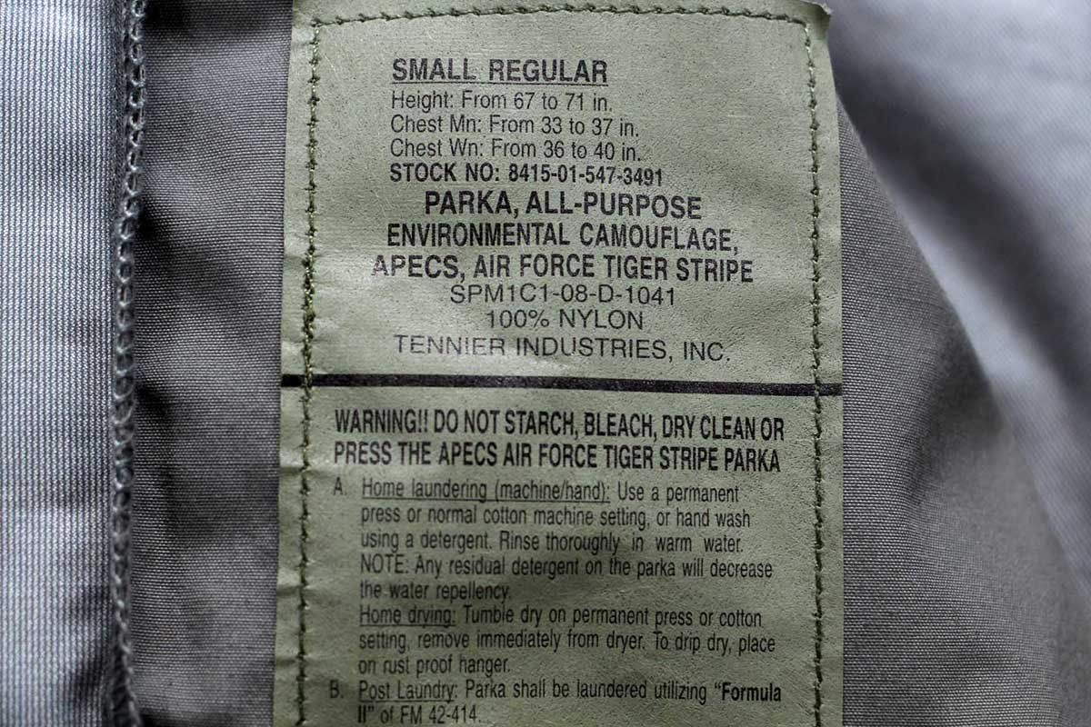 2008年 U.S.AIR FORCE【PARKA,ALL-PURPOSE ENVIRONMENTAL CAMOUFLAGE,APECS,AIR FORCE TIGER STRIPE】です。