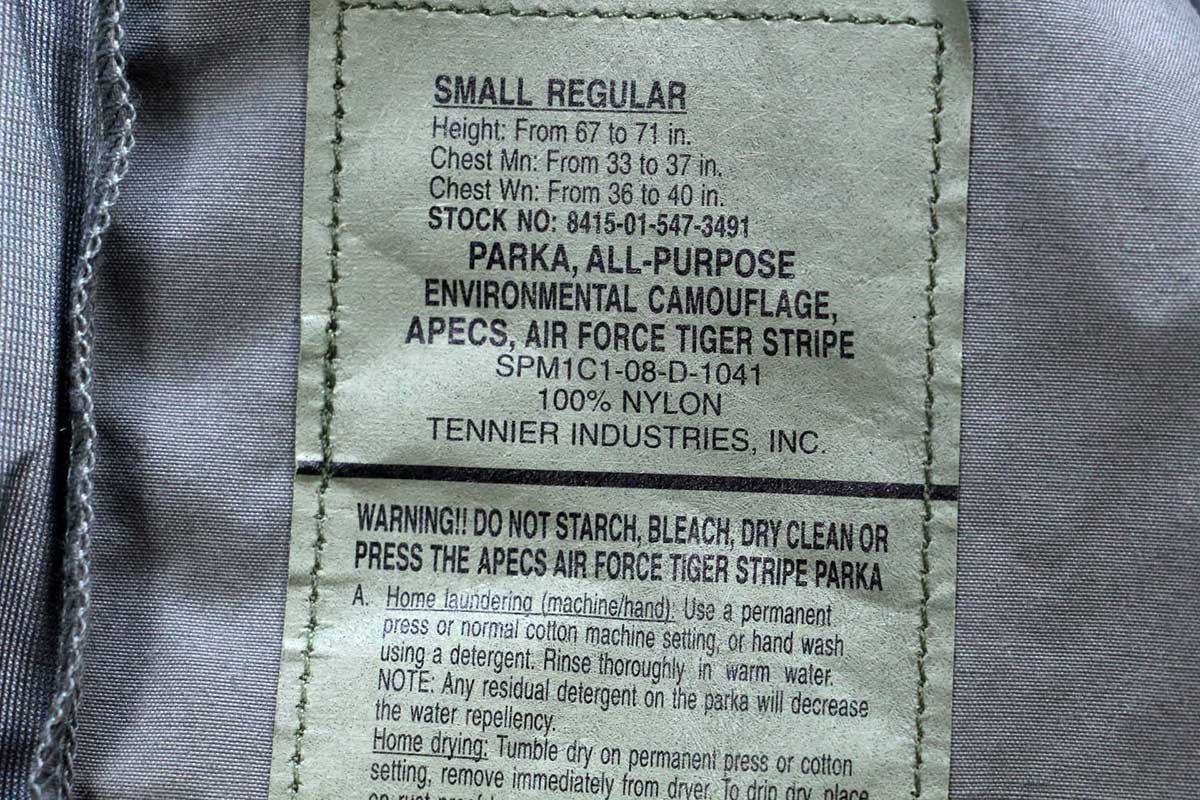2008年 U.S.AIR FORCE【PARKA,ALL-PURPOSE ENVIRONMENTAL CAMOUFLAGE,APECS,AIR FORCE TIGER STRIPE】です。