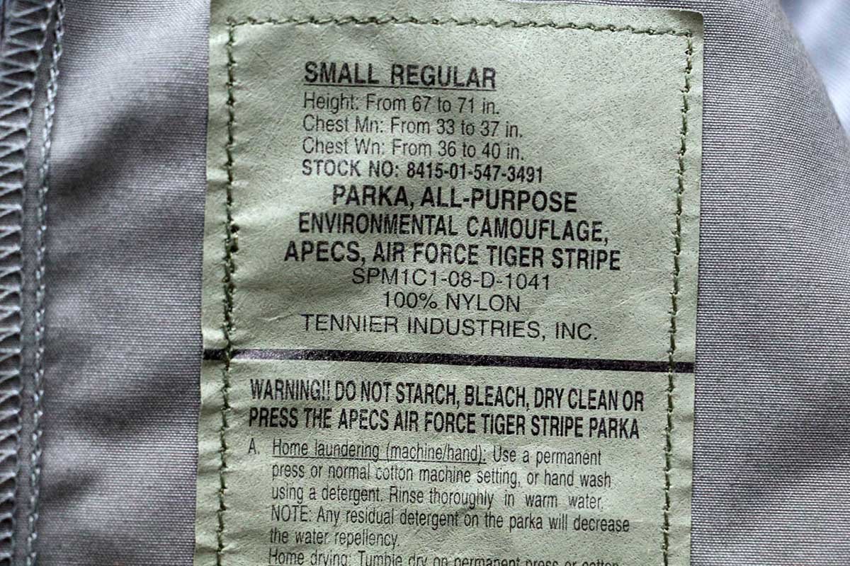2008年 U.S.AIR FORCE【PARKA,ALL-PURPOSE ENVIRONMENTAL CAMOUFLAGE,APECS,AIR FORCE TIGER STRIPE】です。