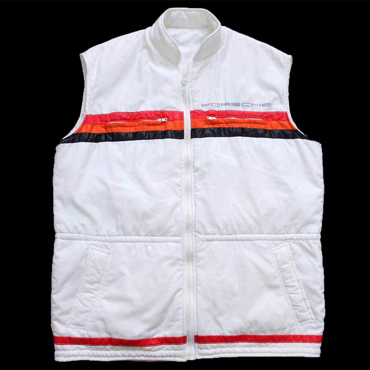 80s PORSCHE ポルシェ ライン入り スタンドカラー 中綿入り レーシングベスト 白