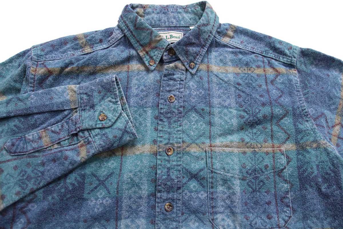 90s USA製 L.L.Bean フォークロア柄 ボタンダウン コットン シャモアクロスシャツ XL