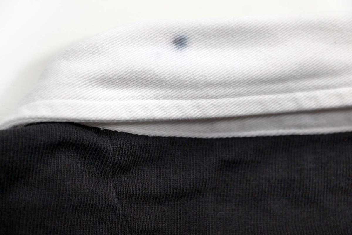 コンディション:着用感があり、全体的に若干の色落ち、襟ぐりや襟付け根に色滲み、裾サイドスリット付け根に少しの擦れがあります。目立つダメージや酷い汚れはなく、生地もしっかりしていて問題なく着用いただける程度です。
