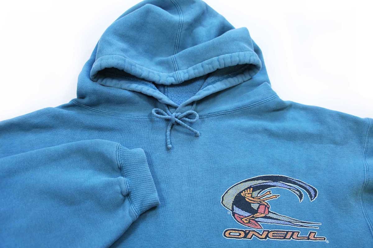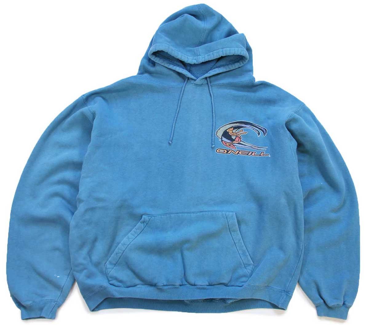 90s O'NEILLオニール ビッグロゴ 両面プリント スウェットパーカー ターコイズ L★フーディー