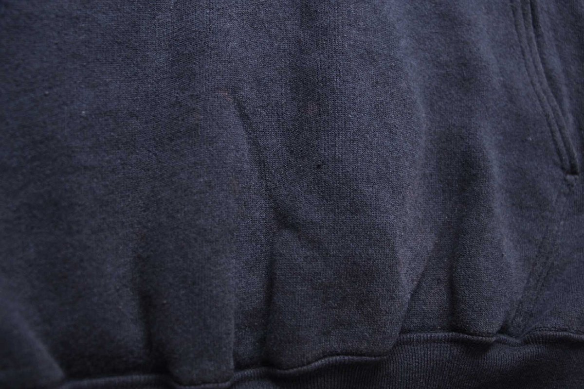 コンディション:着用感があり、全体的に多少の色落ち、胸下やネック後ろに若干の薄汚れ、フロント下部に細かい色汚れがあります。目立つダメージや酷い汚れはなく、古着慣れされている方なら問題なく着用いただける程度です。