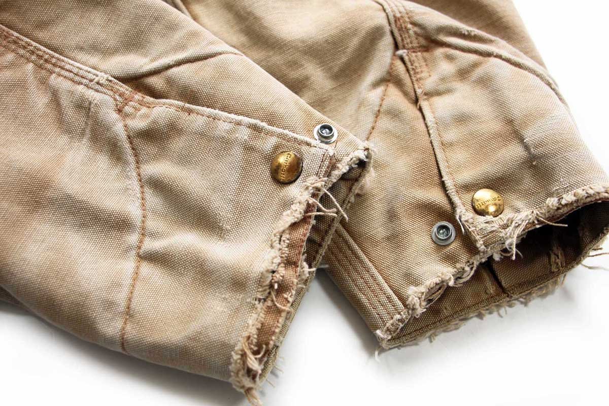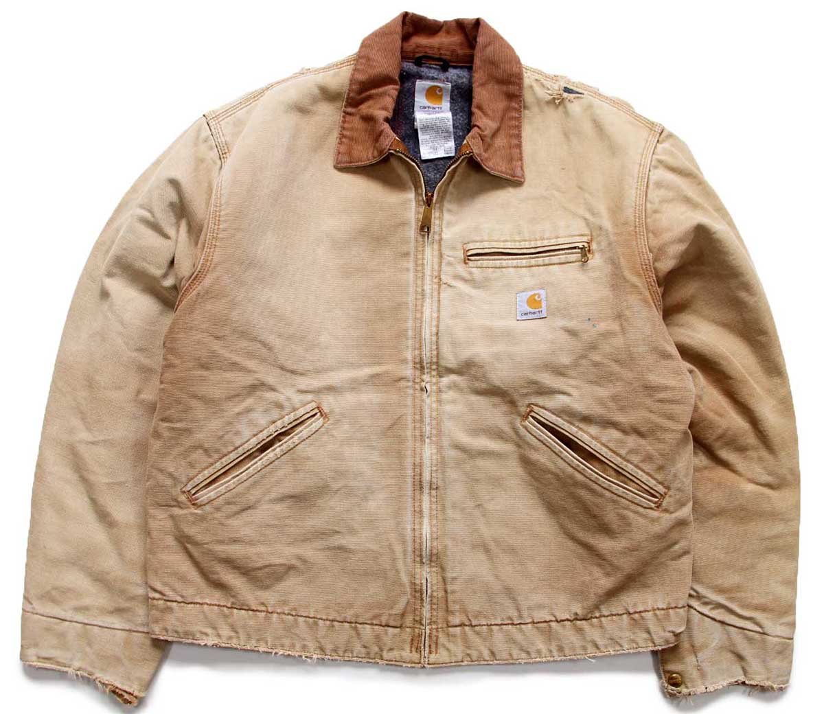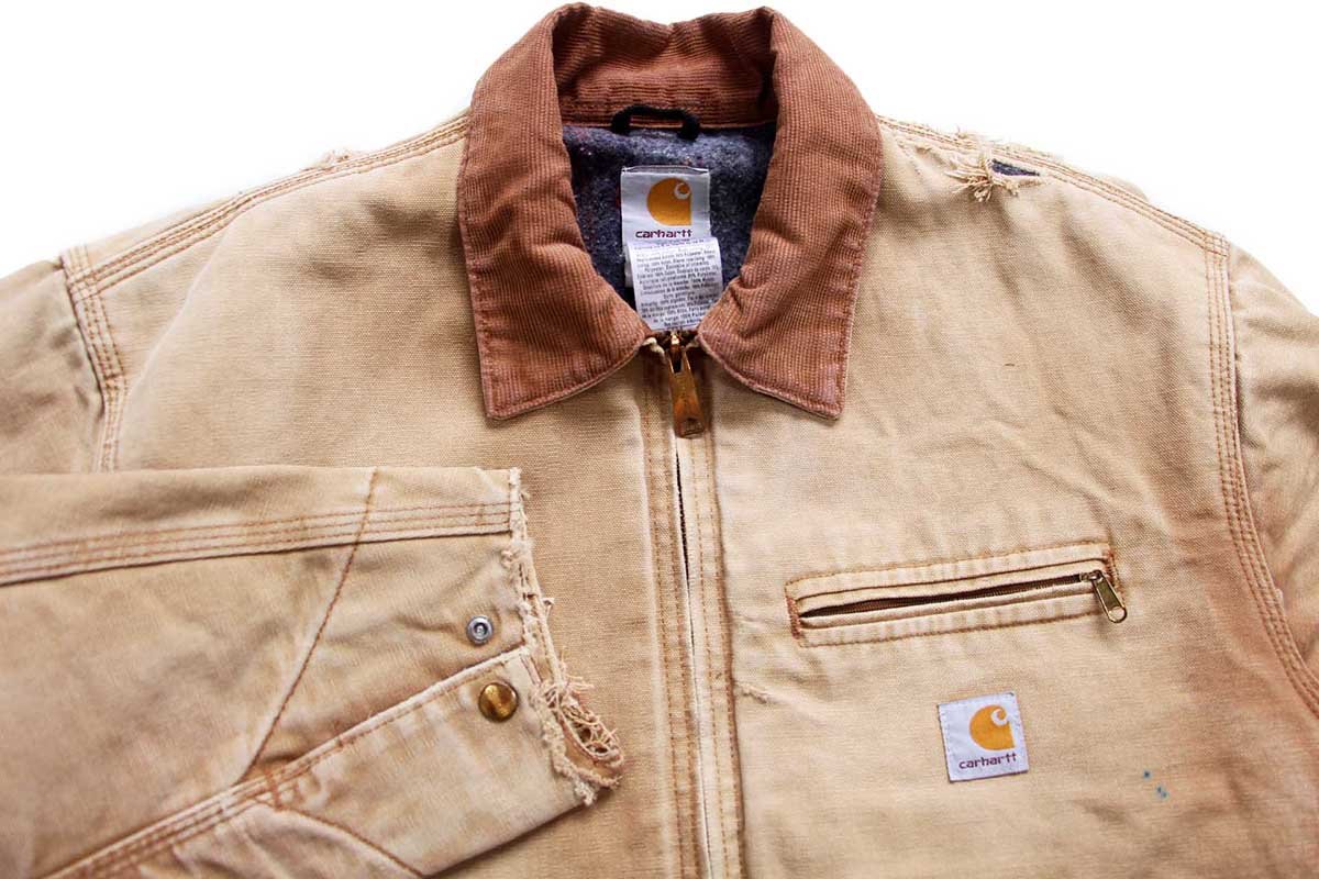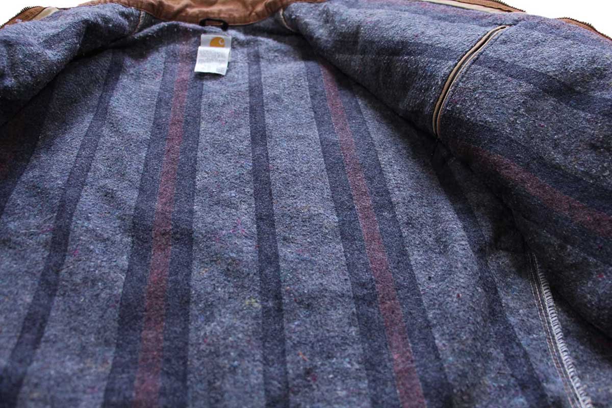 00s USA製 carharttカーハート ブランケットライナー ダック地 デトロイトジャケット ボロ 茶 フェード 44R