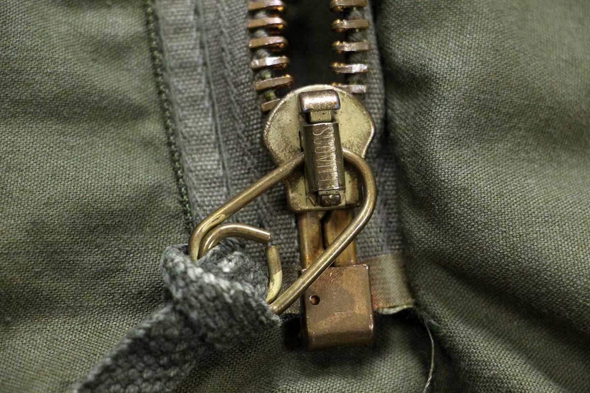 フロントと襟裏はSCOVILLブラスジップ、胸&エポレットにパッチ付き、フード付き、ウエスト&裾にドローコードあり、背中にアクションプリーツあり