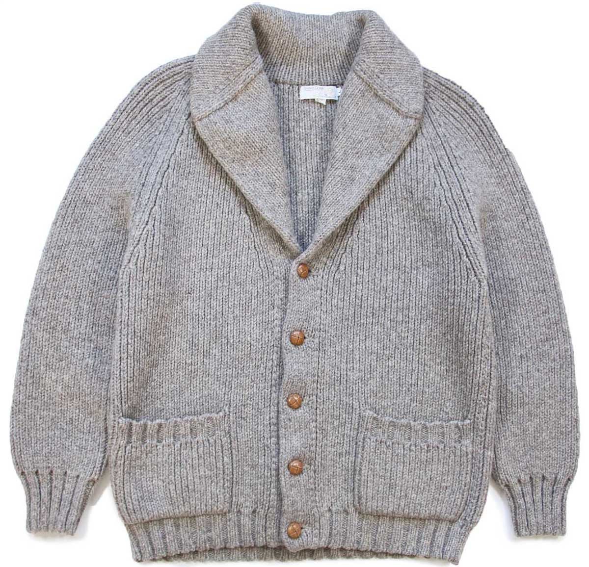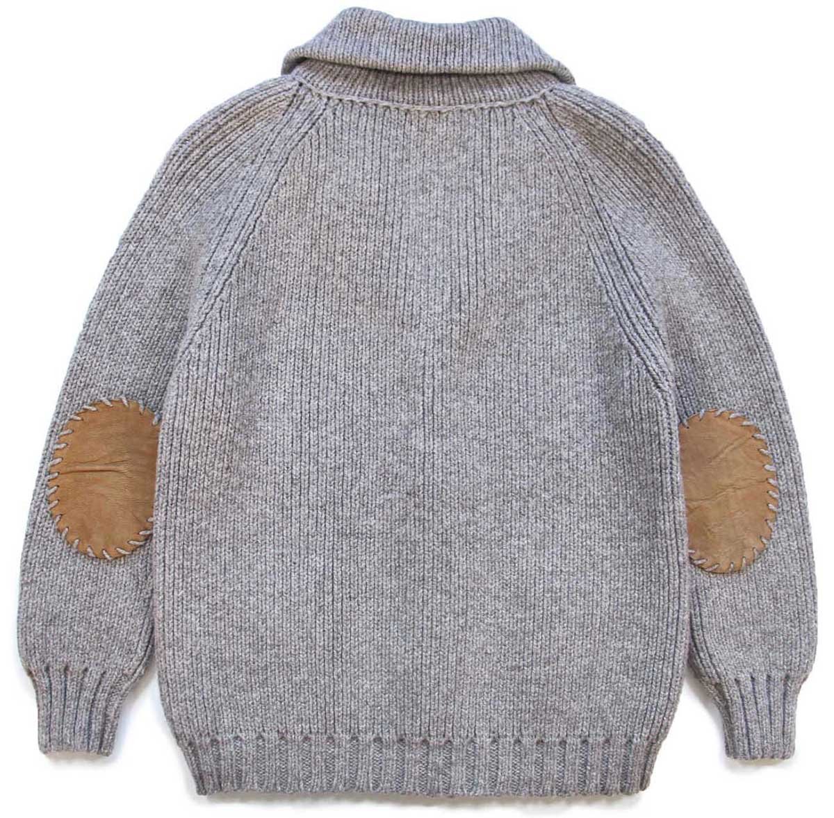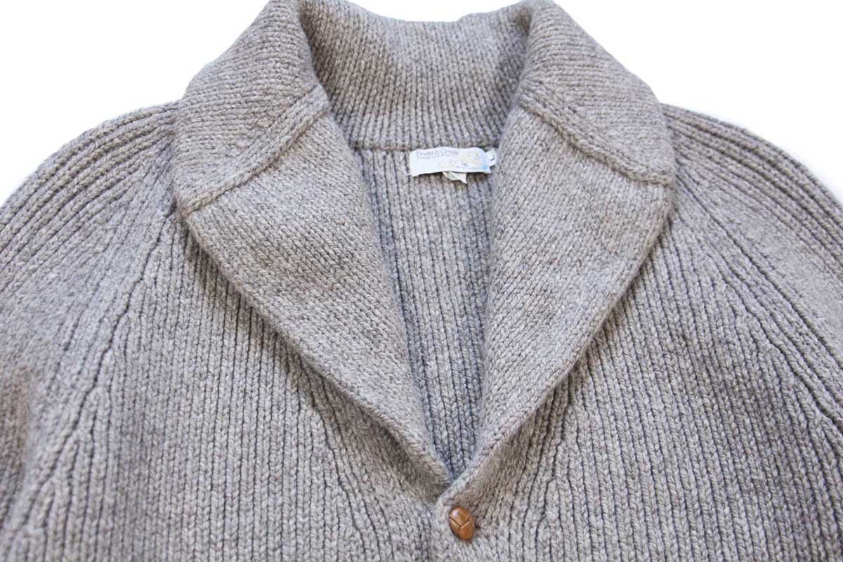 80s French Creek ショールカラー パチポケ&エルボーパッチ ローゲージ ウールニット カーディガン グレーベージュ L