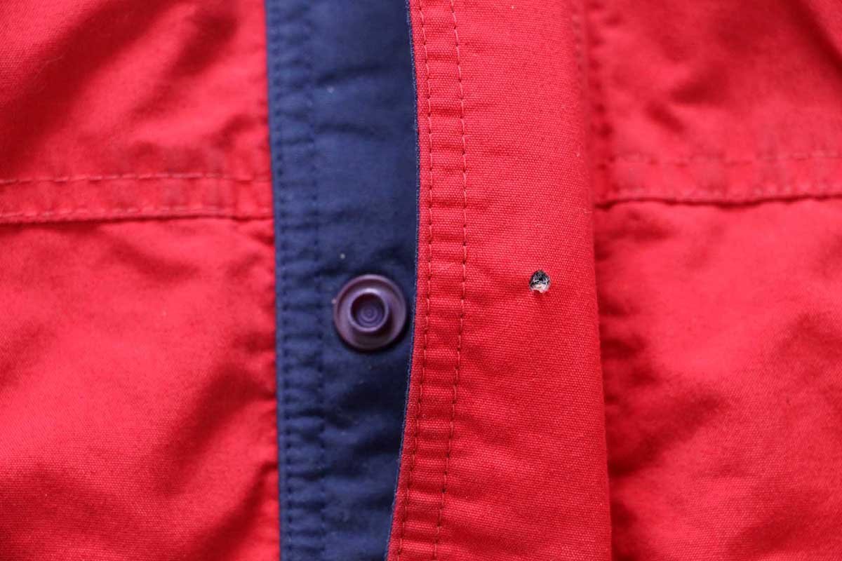 コンディション:着用感があり、フロントや袖、背中右裾に多少の薄汚れ、フロント3つ(第1、第2、第4)と腹部右ポケットのスナップボタンが欠損しています。