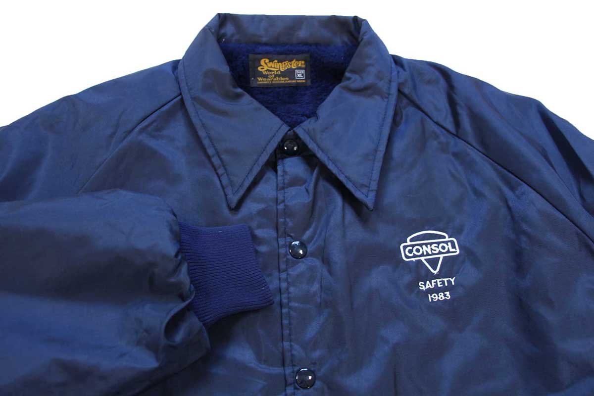 80s Swingster CONSOL SAFETY 1983 刺繍 ボアライナー ナイロン コーチジャケット 紺 XL
