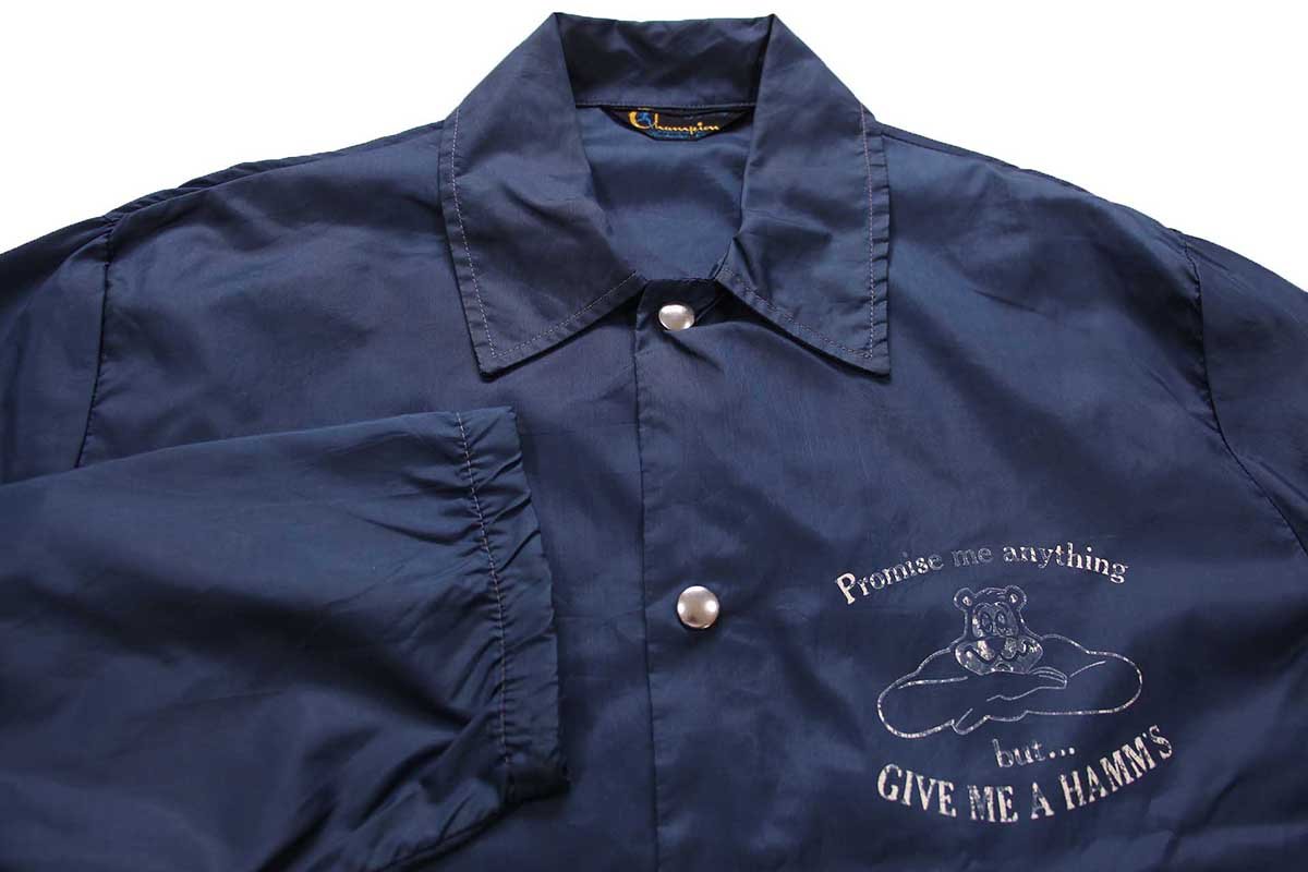 70s Championチャンピオン ランタグ Hamm's Beer Bear マスコット ナイロン コーチジャケット 紺