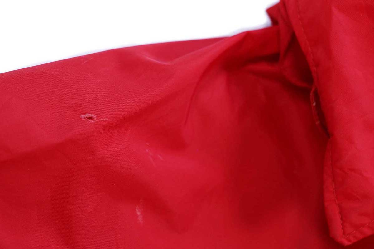 コンディション:着用感があり、フロント右裾付近に少しのペン汚れ、右肩に細かい浅い擦れと1つの細かい小穴、襟のループのゴムが劣化しています。目立つダメージや酷い汚れはなく、古着慣れされている方なら問題なく着用いただける程度です。