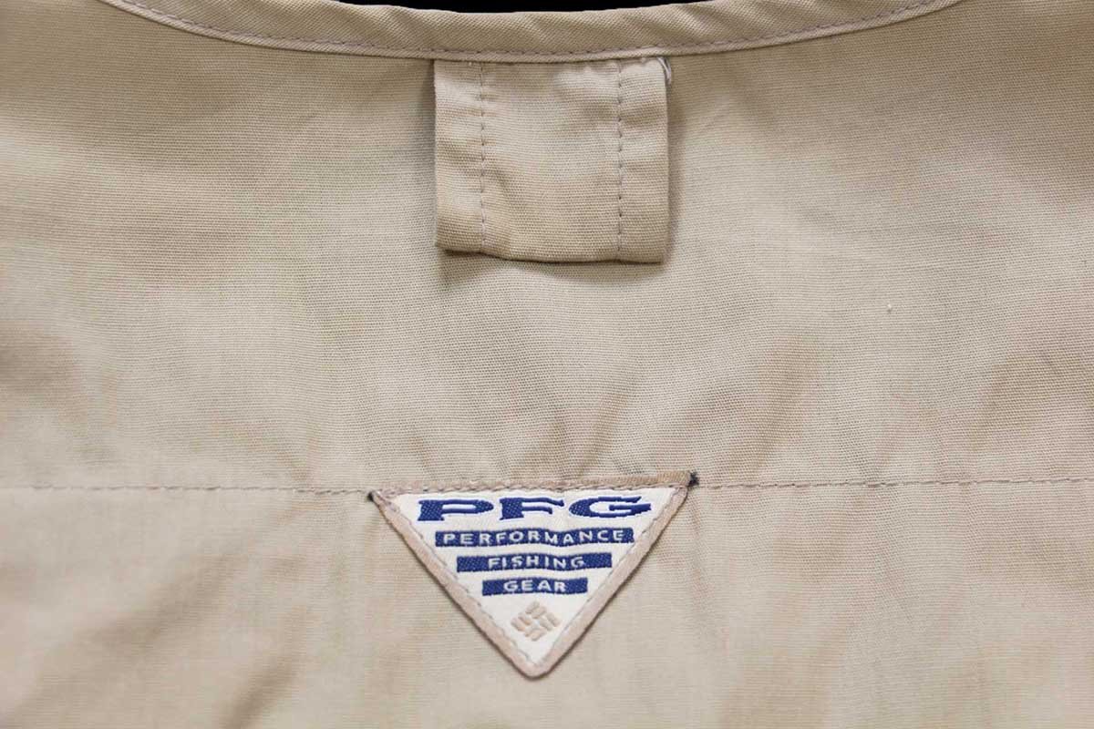 90s Columbiaコロンビア PFG ショート丈 フィッシングベスト グレーベージュ L