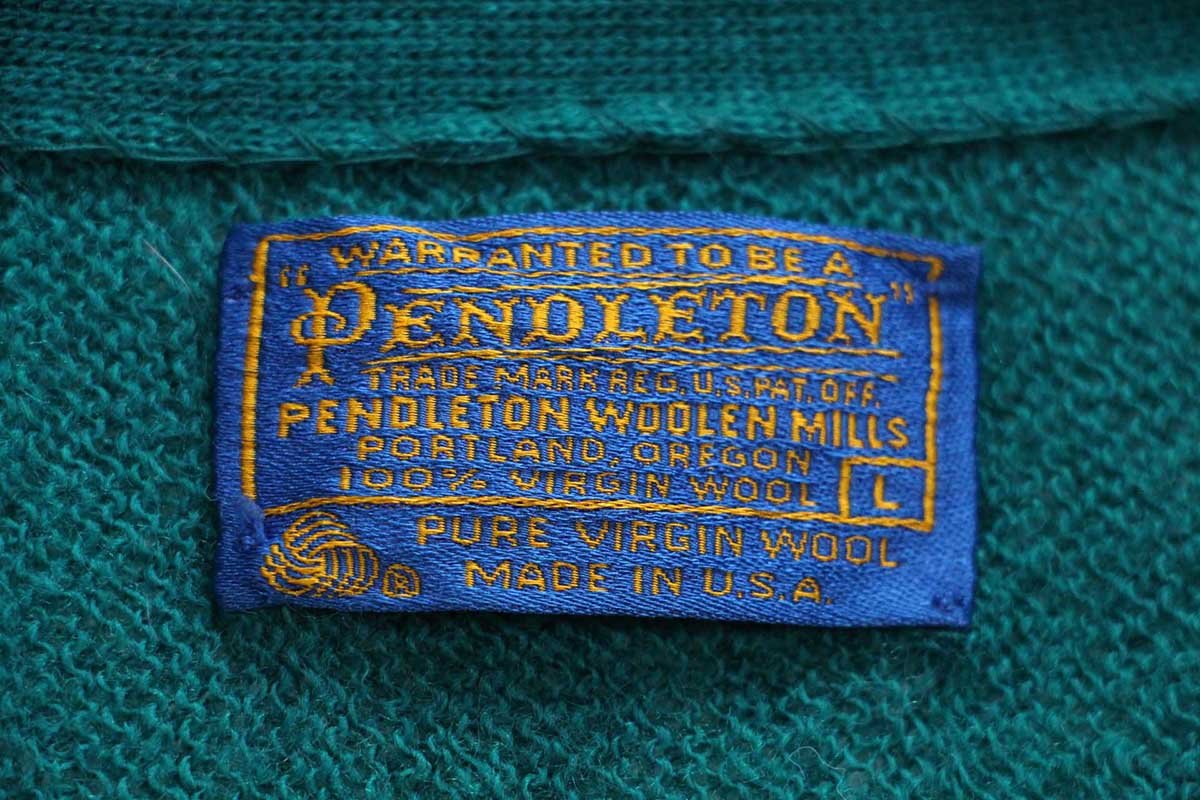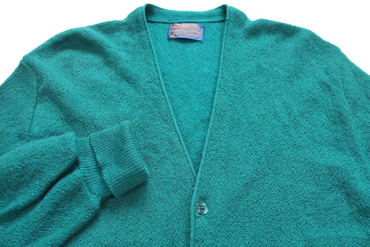 70s USA製 PENDLETONペンドルトン パール編み ウールニット カーディガン 緑 L