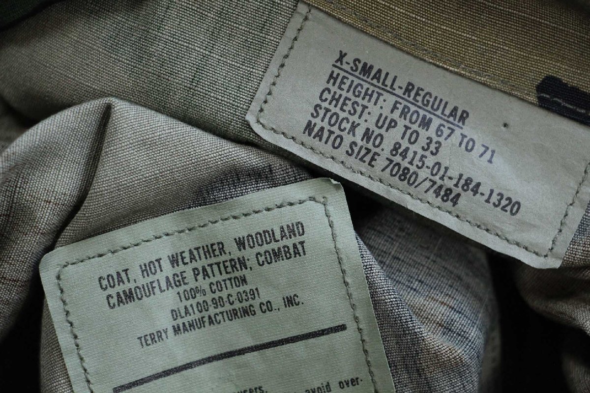 90年 U.S.ARMY【COAT, HOT WEATHER, WOODLAND CAMOUFLAGE PATTERN: COMBAT】ジャケットです。