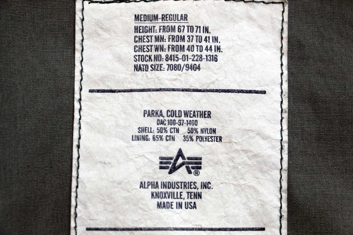 90s USA製 ALPHAアルファ コールドウェザーパーカー オリーブグリーン M-R