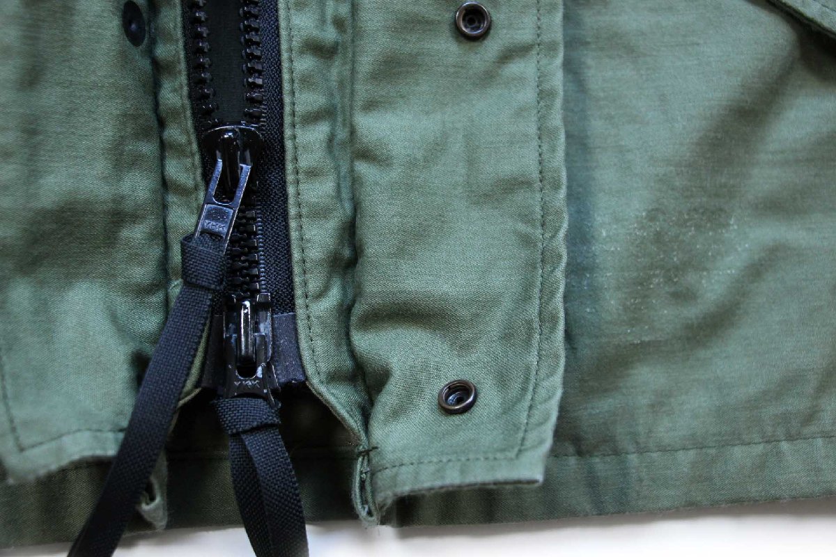 コンディション:着用感があり、背中上部と両腕に多少の汚れ、背中左下部に細かい薄汚れがあります。目立つダメージや酷い汚れはなく、生地もしっかりしていて、古着慣れされている方なら問題なく着用いただける程度です。