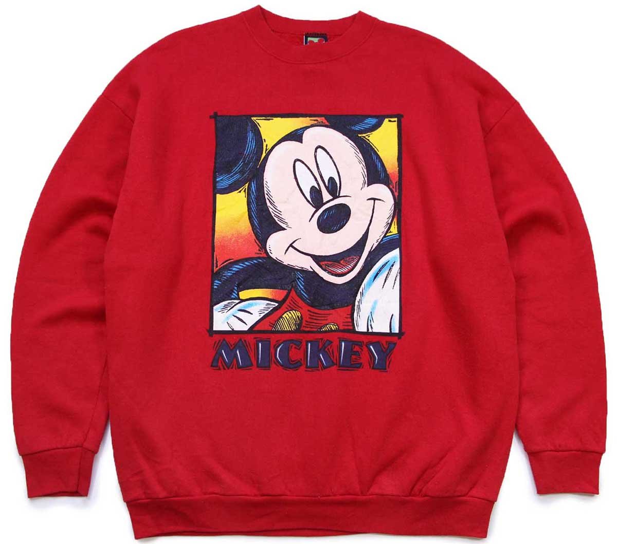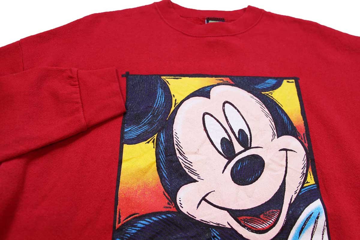 90s USA製 Disney ディズニー MICKEY ミッキー マウス アート スウェット 赤 XL