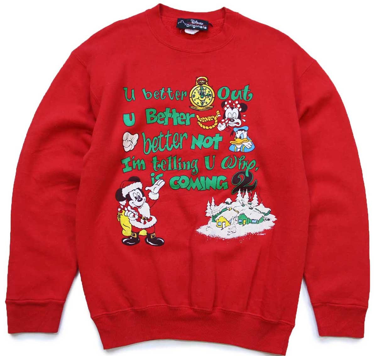 80s USA製 Disneyディズニー ミッキー マウス ドナルドダック サンタクロース クリスマス スウェット 赤 M