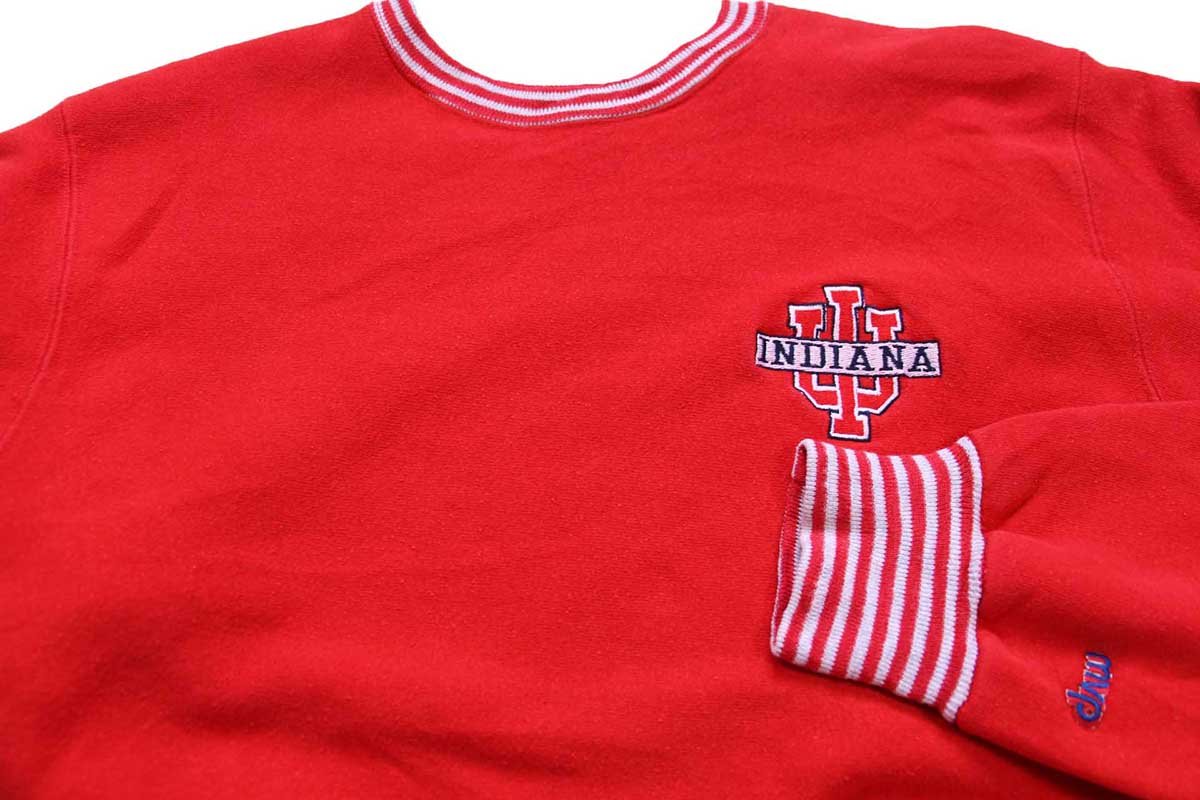 90s USA製 MVP INDIANA 刺繍 リブボーダー リバースウィーブ スウェット 赤 XL