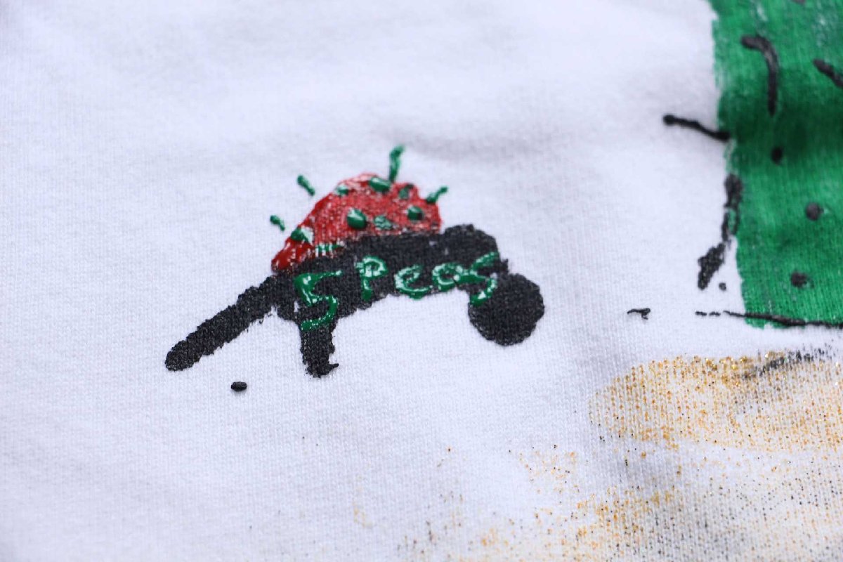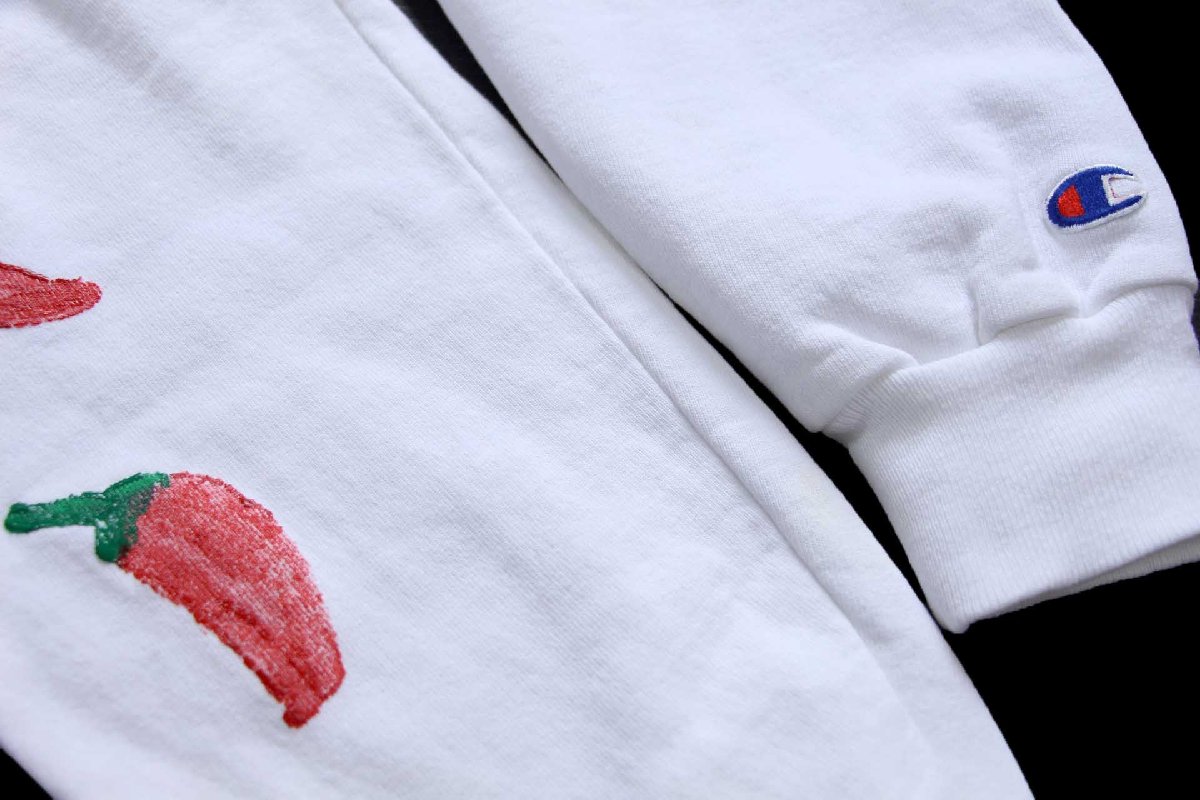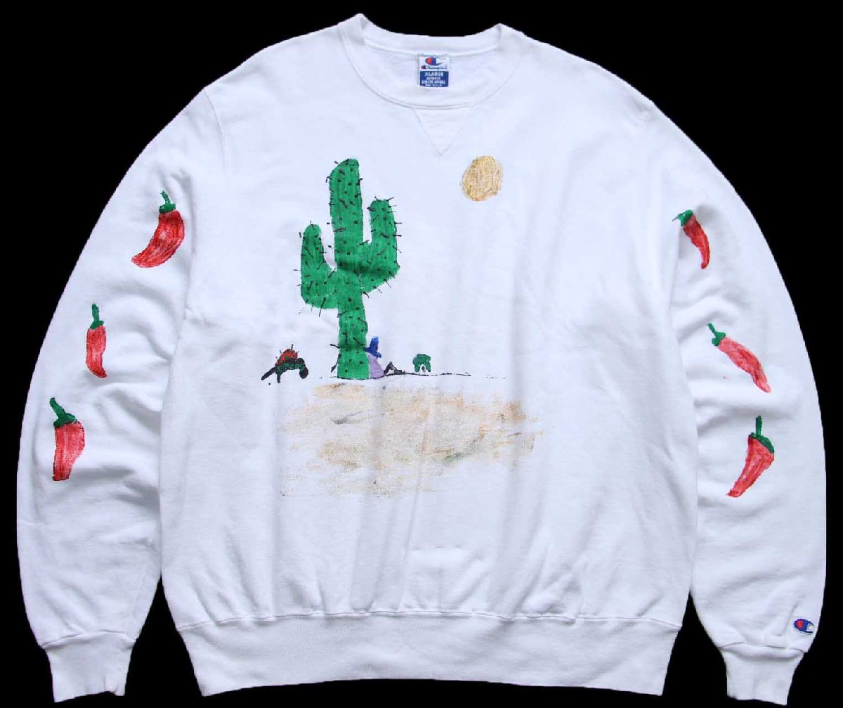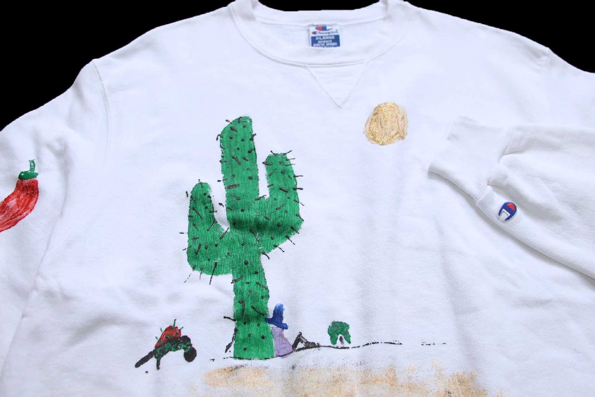 90s USA製 Championチャンピオン サボテン ハラペーニョ ハンドペイント アート 前V スウェット 白 XL