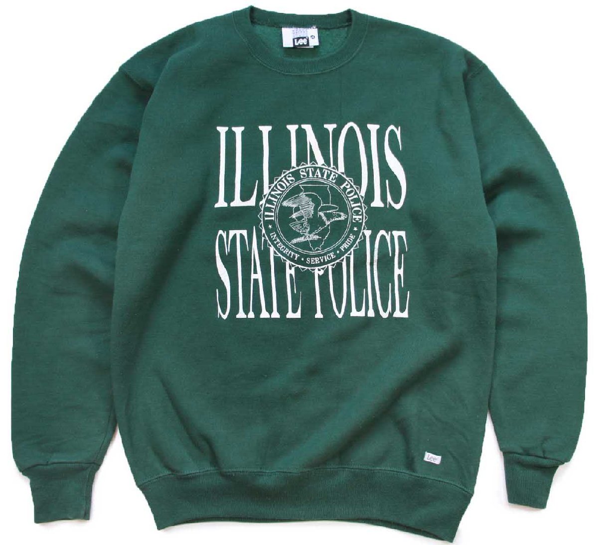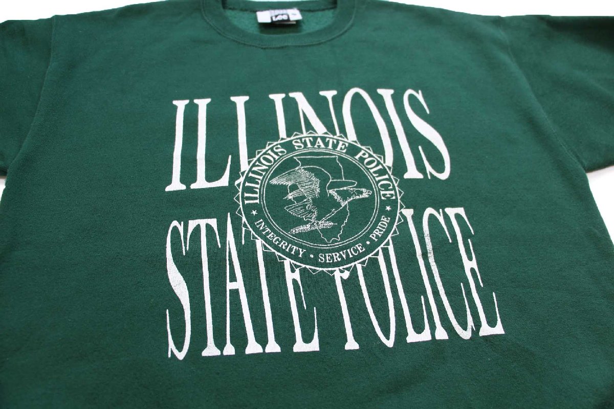90s USA製 Leeリー ILLINOIS STATE POLICE ひび割れプリント スウェット 緑 M