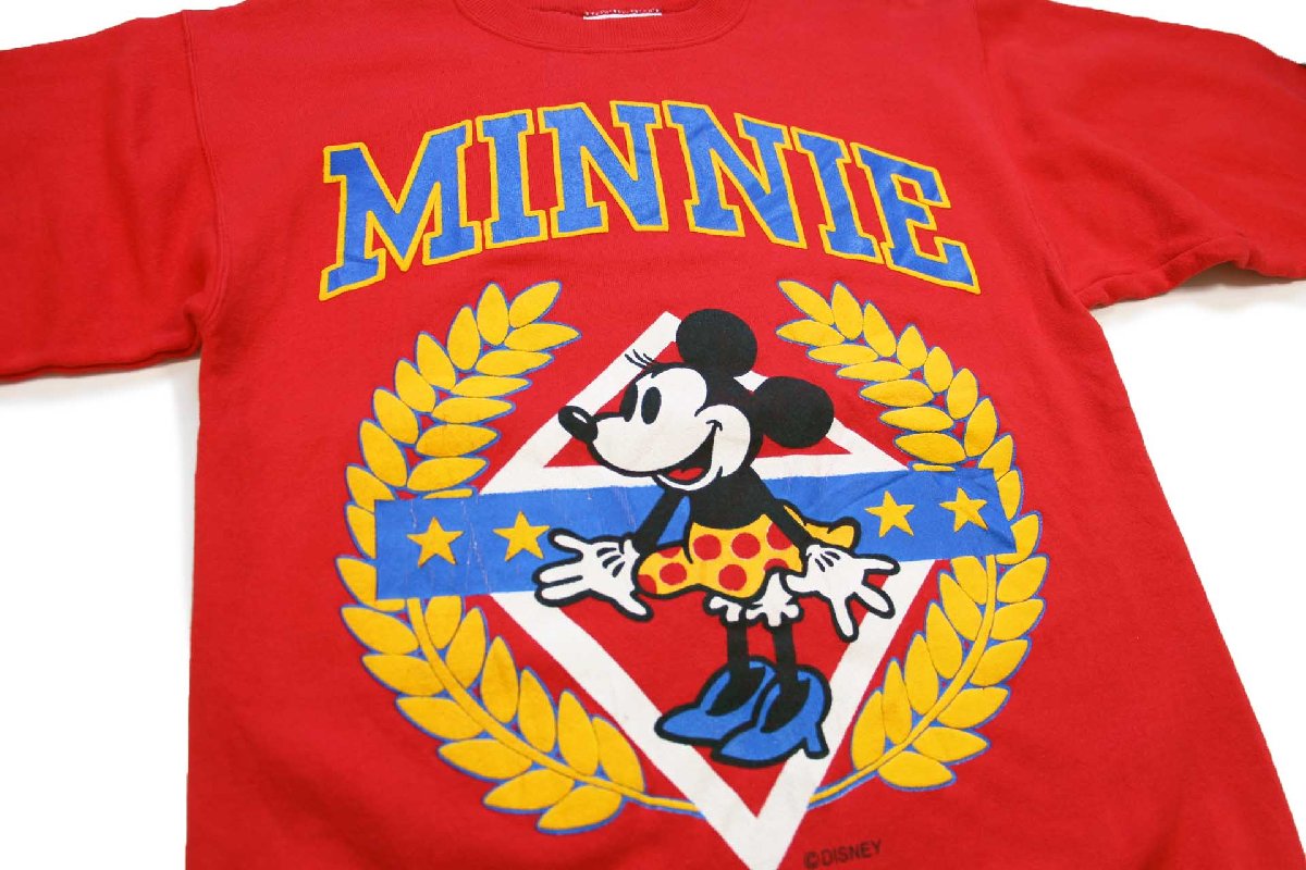 80s USA製 Hanes DISNEY ディズニー MINNIE ミニー マウス 発泡プリント スウェット 赤 S