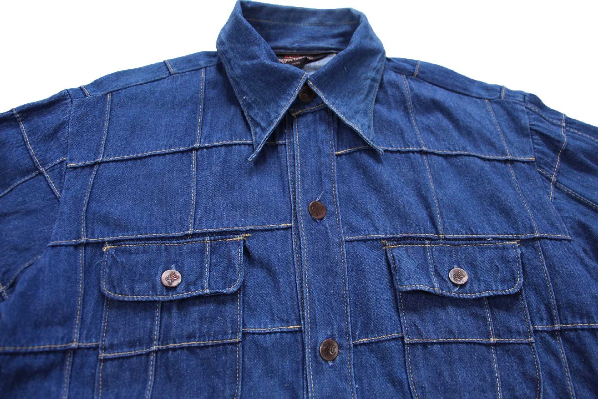 70s 日本製 Prepster パッチワーク デニムシャツジャケット M