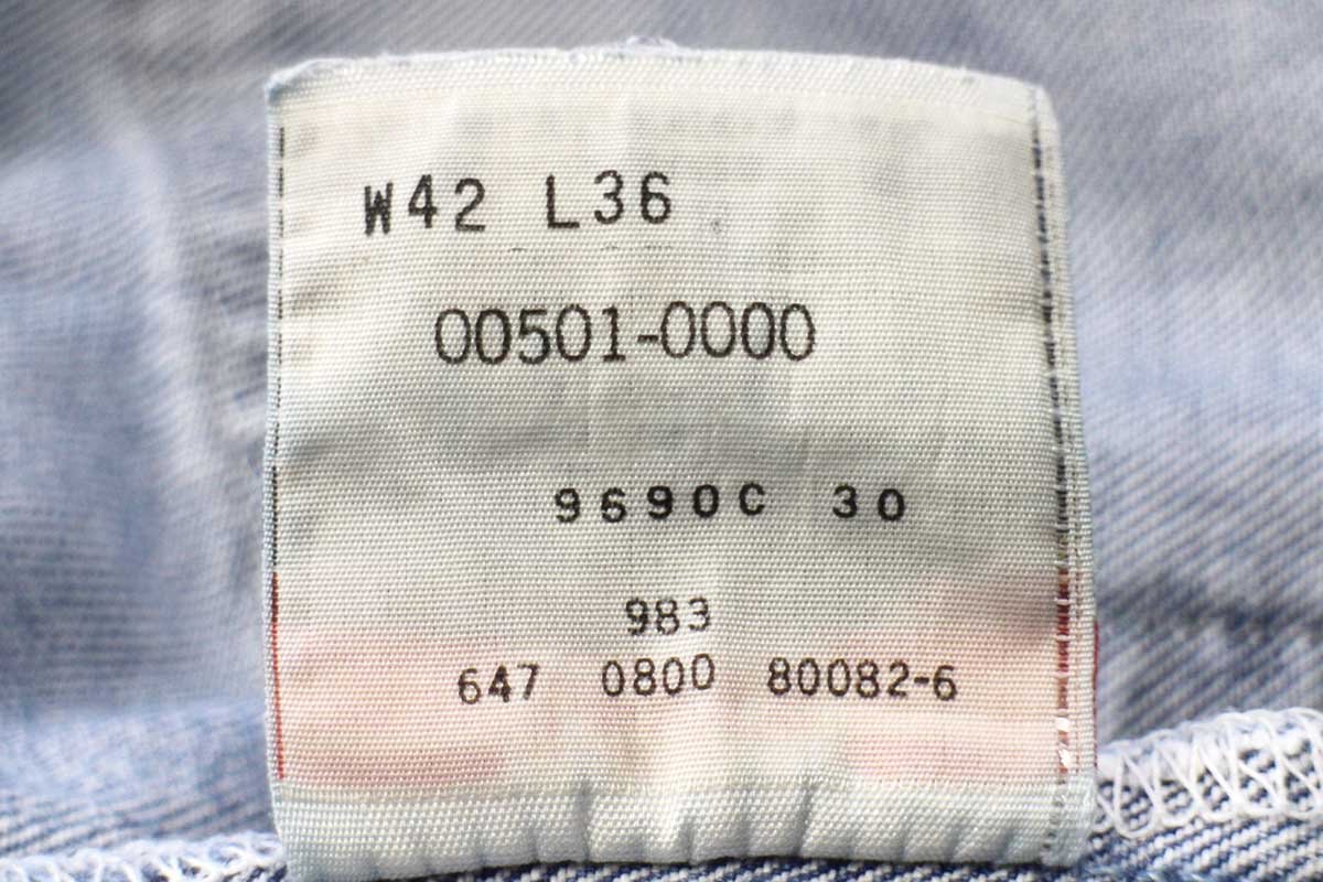 【状態追記】:おそらく裾直しあり、右ヒップポケットに僅かな小キズ、左ヒップポケットや裾に擦り切れ