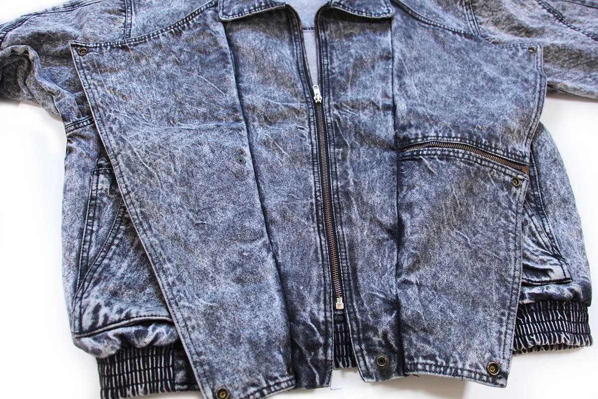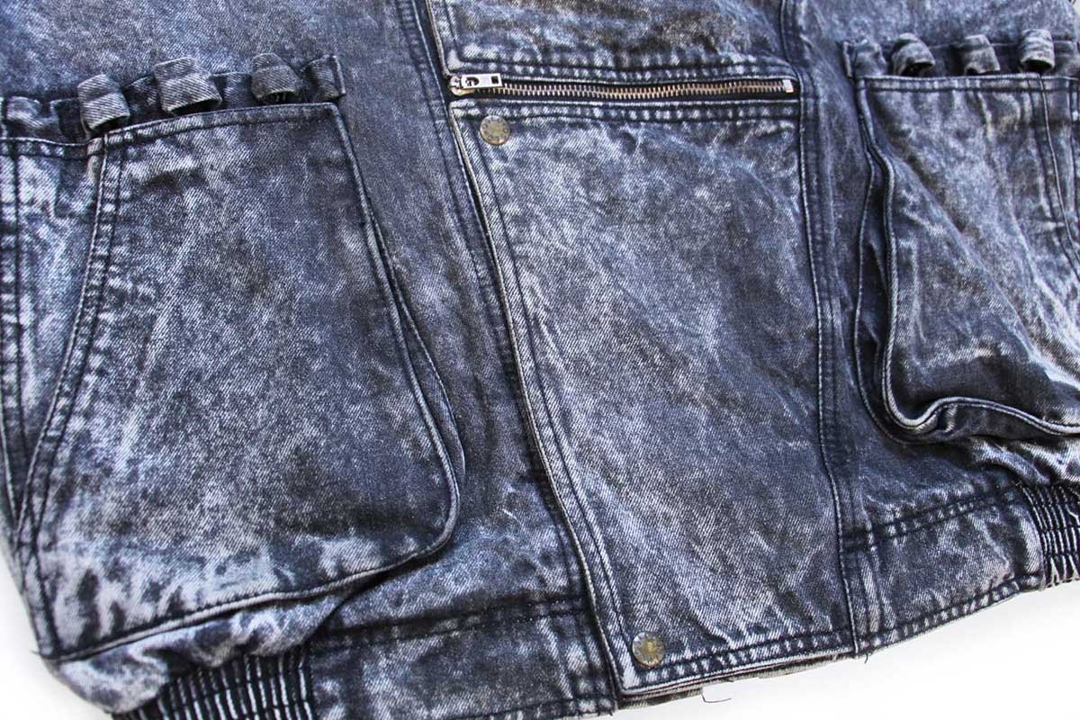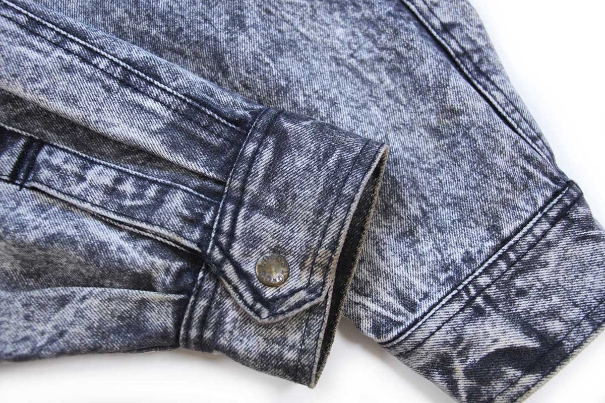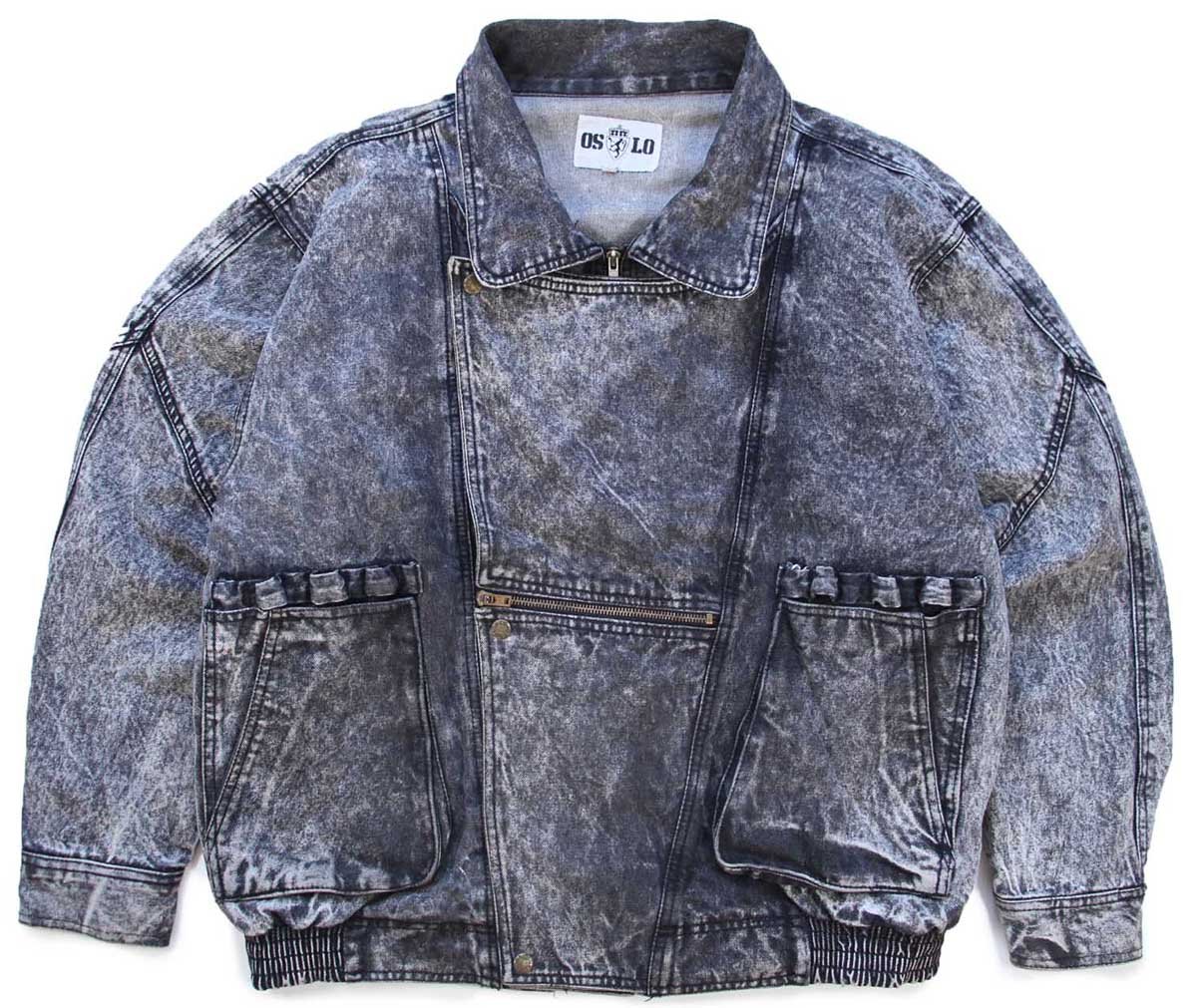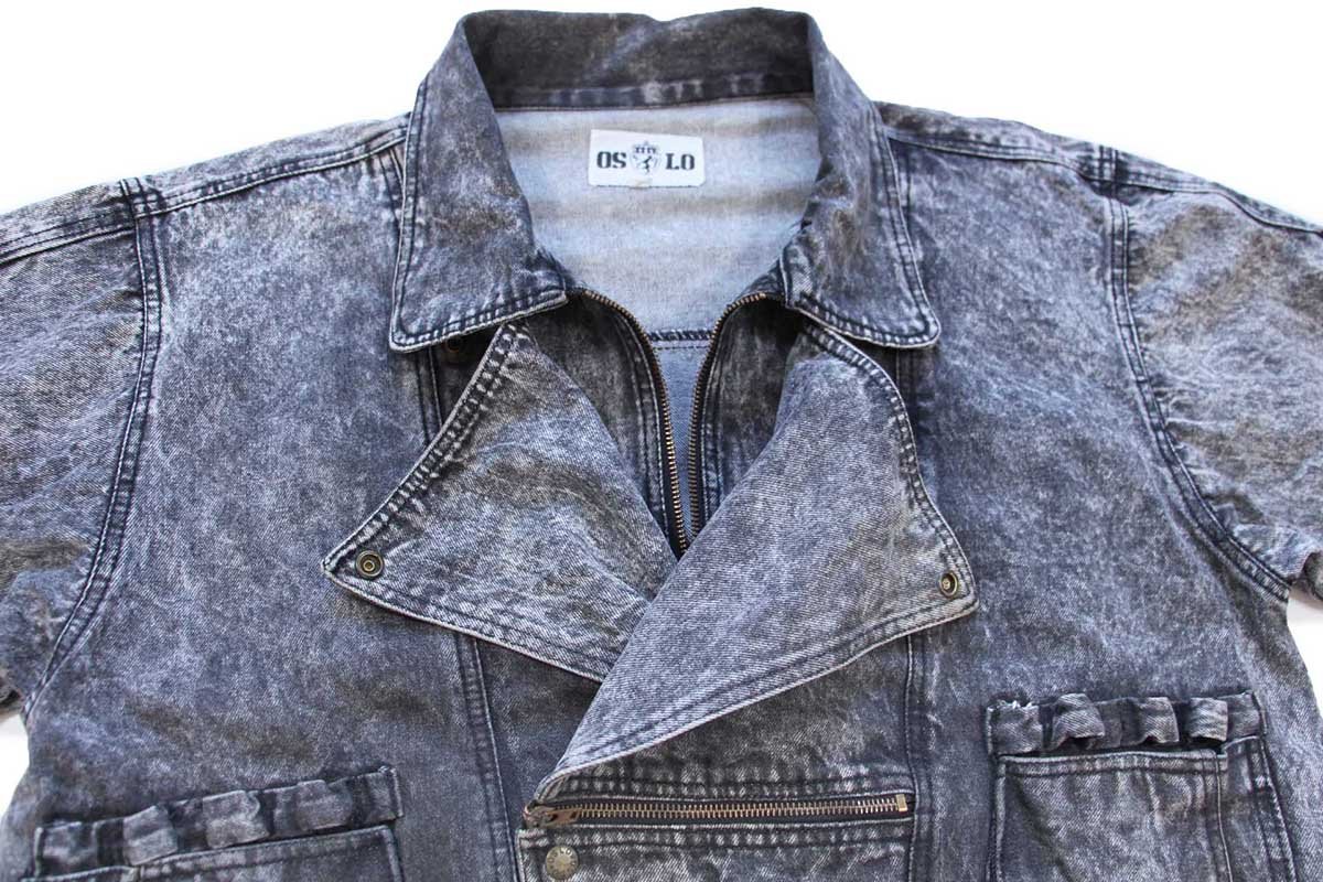80s OSLO デザイン ケミカルウォッシュ ブラック デニムジャケット L★アシッド
