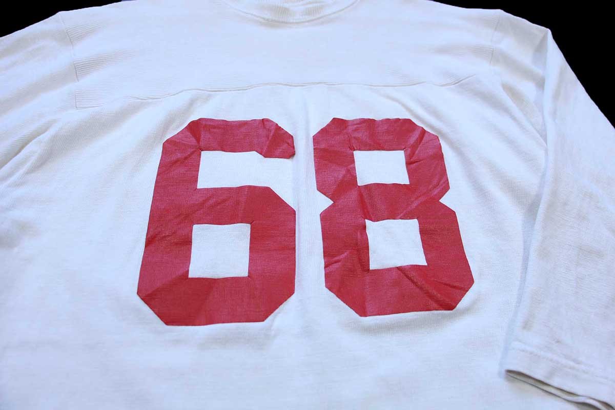 60s USA製 Wilson 68 ナンバリング コットン×ナイロン フットボールTシャツ 生成り L