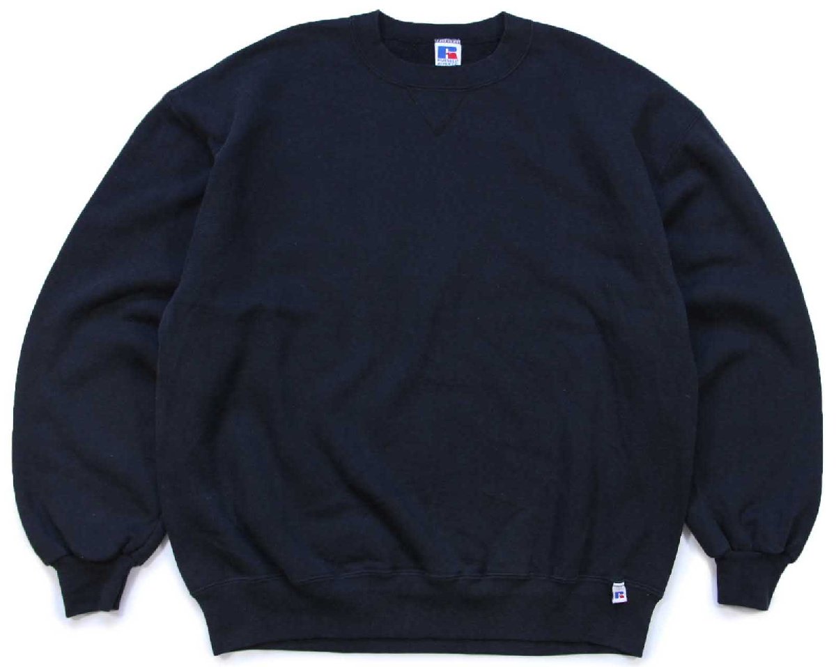 90s USA製 RUSSELLラッセル 無地 前V スウェット 黒 XL★ブランク