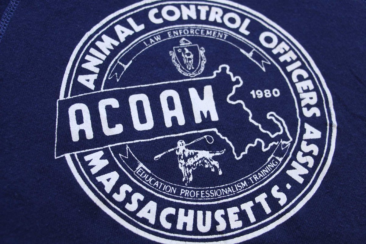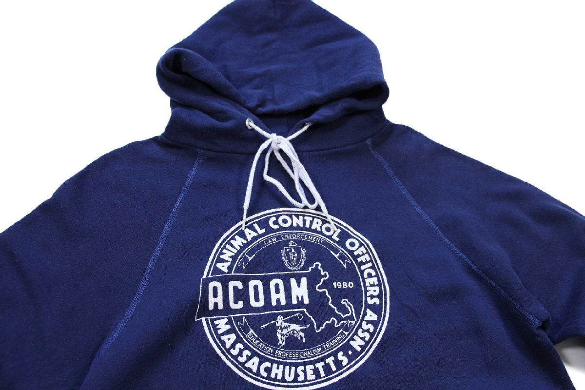 80s USA製 Hanes ACOAM ANIMAL CONTROL OFFICERS ASSN MASSACHUSETTS スウェットパーカー 紺 M★フーディー